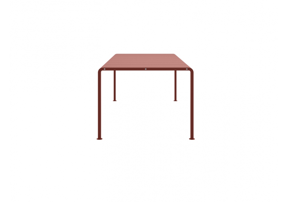 Vendicari Lido firmato da Jangir Maddadi per Cappellini è un tavolo per esterno realizzato con struttura smontabile in tubolare di acciaio inox AISI 304 e piano lamiera di alluminio tagliata a laser e piegata con verniciatura a polvere goffrata.