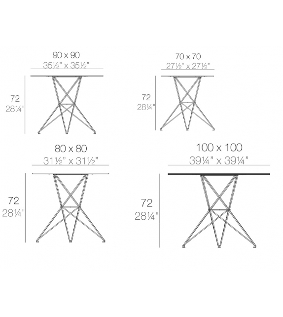 Faz Inox firmato da Ramón Esteve per Vondom è un tavolo quadrato realizzato con piano in HPL e base in metallo. Disponibile in diverse finiture e dimensioni.