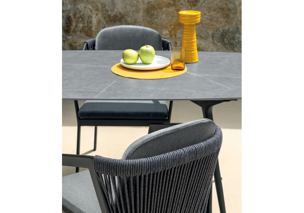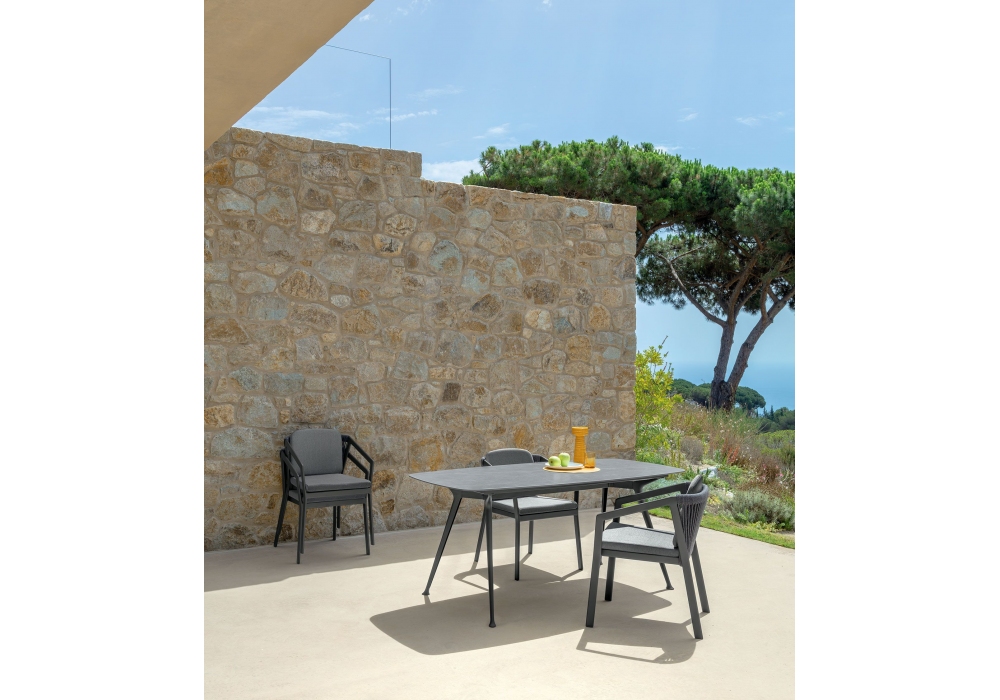 Nova firmato da Talenti è un tavolo con struttura in alluminio e top in gres. Disponibile in diverse finiture.