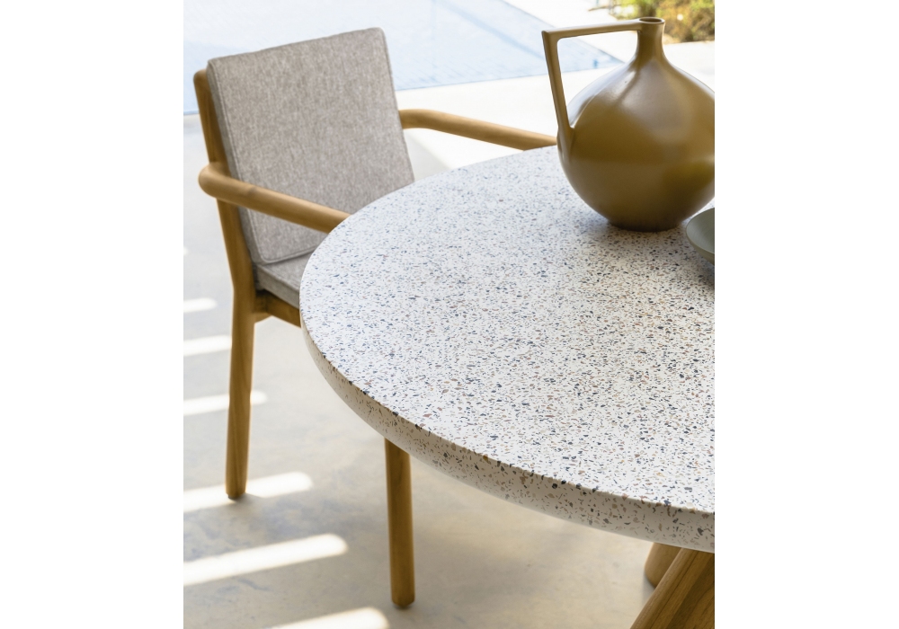 Prichi firmato da Talenti è un tavolo realizzato in legno, piano nella finitura Terrazzo Beige.