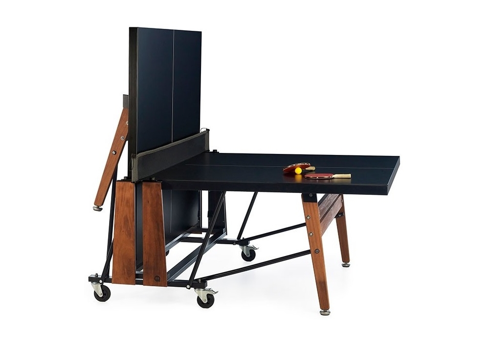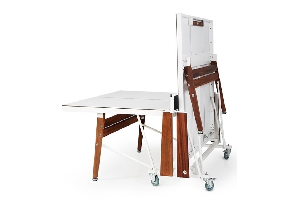 RS-Ping Pong Folding firmato da Rafael Rodríguez per RS Barcelona è un tavolo da ping pong piegabile disponibile in 2 finiture: bianco o nero. Gambe in legno di iroko. Palline (6 pezzi), racchette (2 pezzi) e rete inclusa.