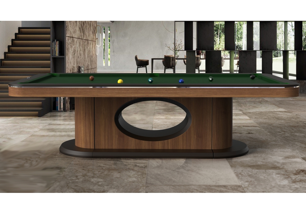 Roma firmato da Cavicchi è un tavolo da biliardo disponibile su richiesta in differenti finiture e dimensioni con copertura in tre pezzi nella stessa finitura. Campo da gioco dimensioni interne 220 x 110 cm ; Dimensioni e sterne 256 x 146 cm.