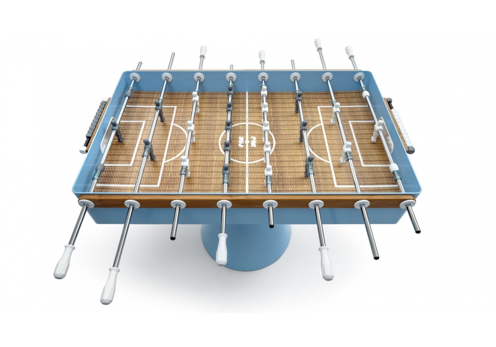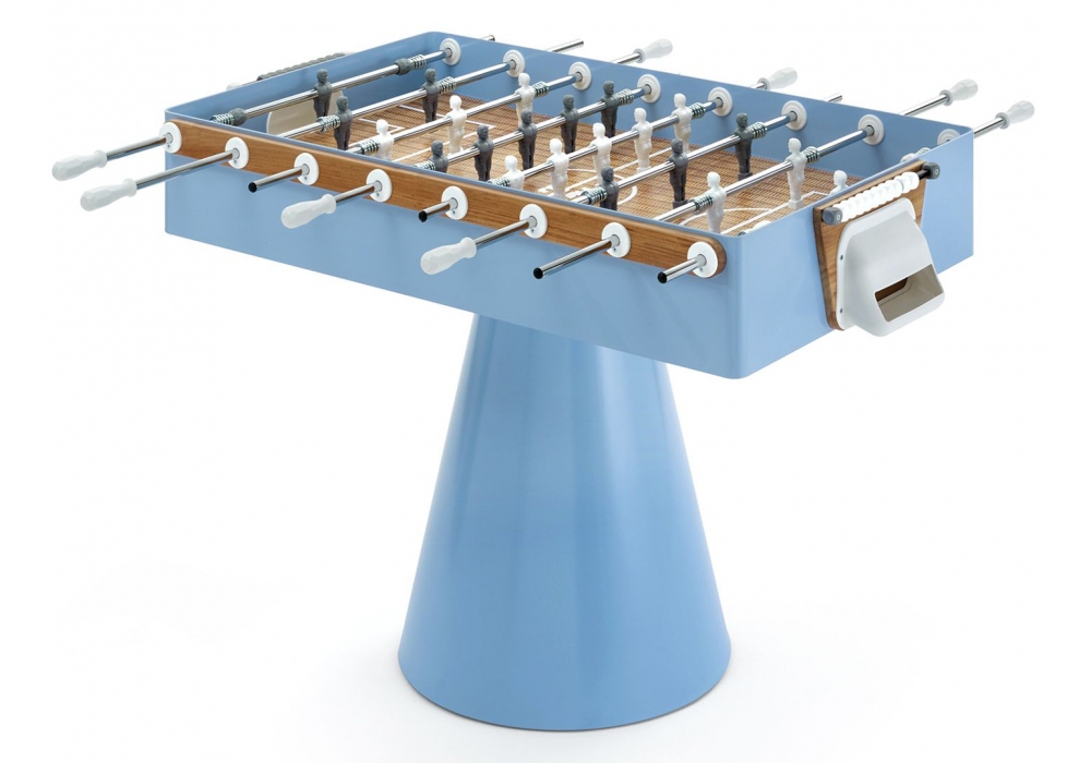 Ciclope Capri firmato da Basaglia + Rota Nodari per Fas Pendenza è un calciobalilla per esterni di forma quadrangolare con campo da gioco in laminato plastico stratificato. Il mobile è in metallo con inserti in legno teak interamente verniciato di colore azzurro. Il basamento è di forma conica in metallo verniciato con piedini regolabili. Ciclope Capri è disponibile in differenti versioni di aste viene fornito con 5 palline da gioco di colore bianco.
