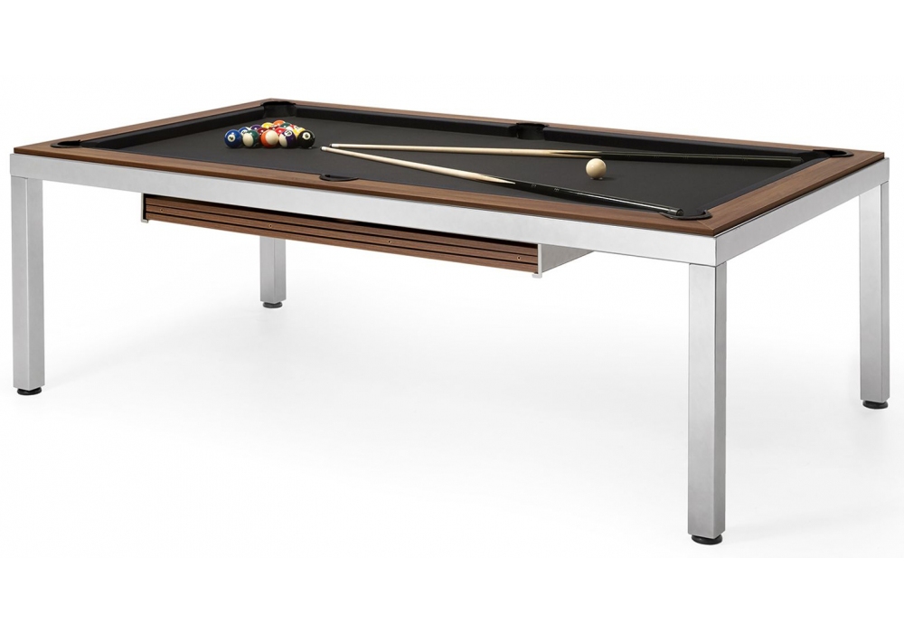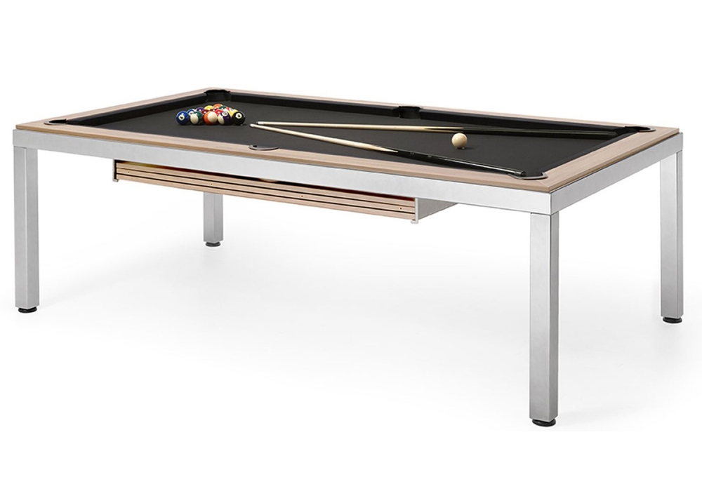 Cube firmato da Basaglia + Rota Nodari per Fas Pendenza è un carambola di forma quadrangolare con campo da gioco è in un unico pezzo di ardesia. La struttura è in melamina e metallo con base a quattro gambe con piedini regolabili. Cube è disponibile in differenti finiture e viene fornito con 4 stecche; set bilie numerate Ø 57; scatola gesso; triangolo per bilie; spazzola.