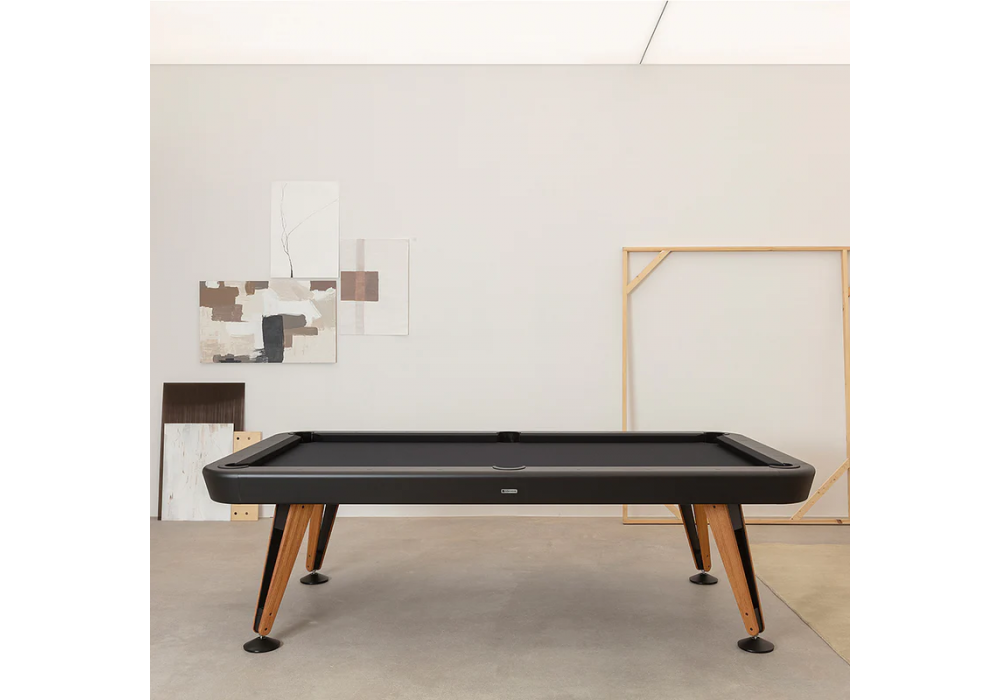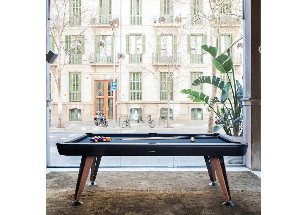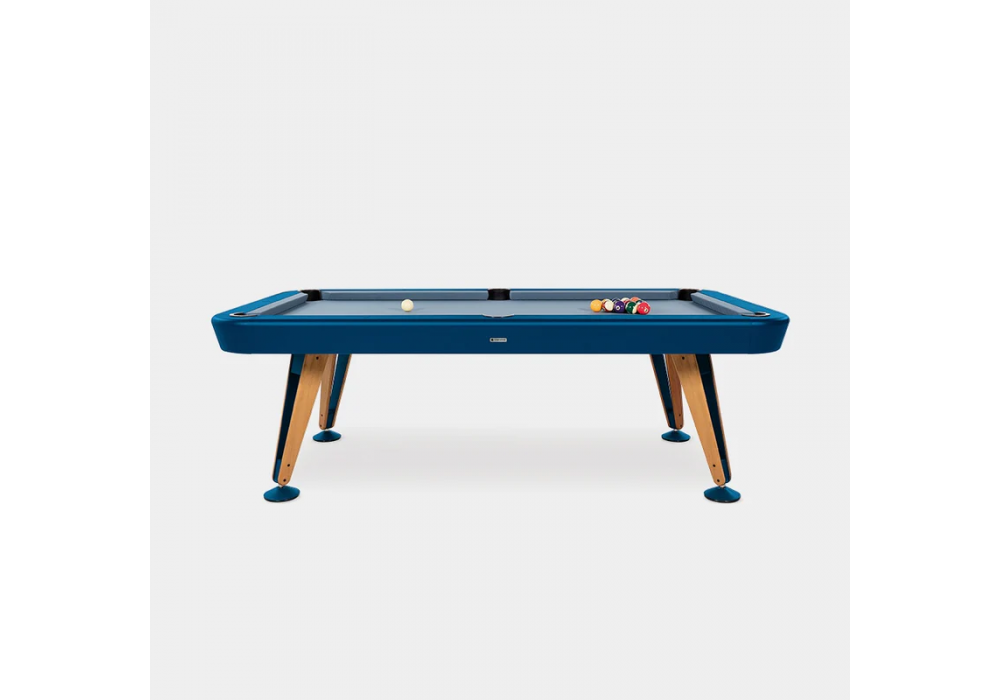 Diagonal Indoor firmato da Yonoh per RS Barcelona è un tavolo da biliardo realizzato con struttura in acciaio con vernice poliestere micro-testurizzata a polvere. Piano in tessuto Gorina, lana pettinata e nylon e gambe in acciaio e legno. Disponibile in diverse finiture e dimensioni.
