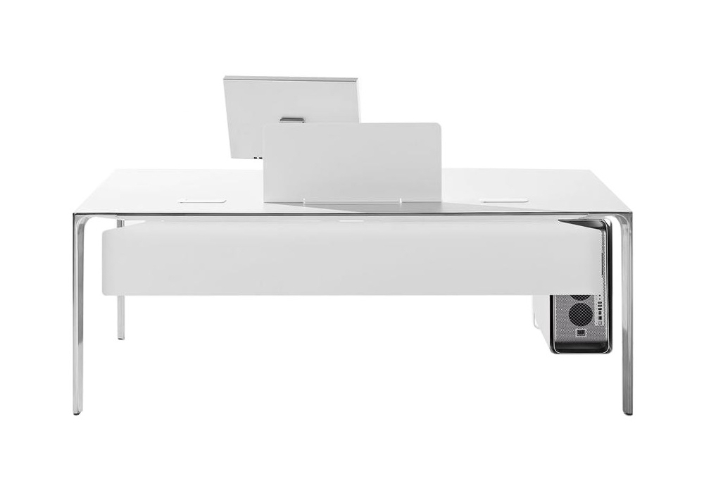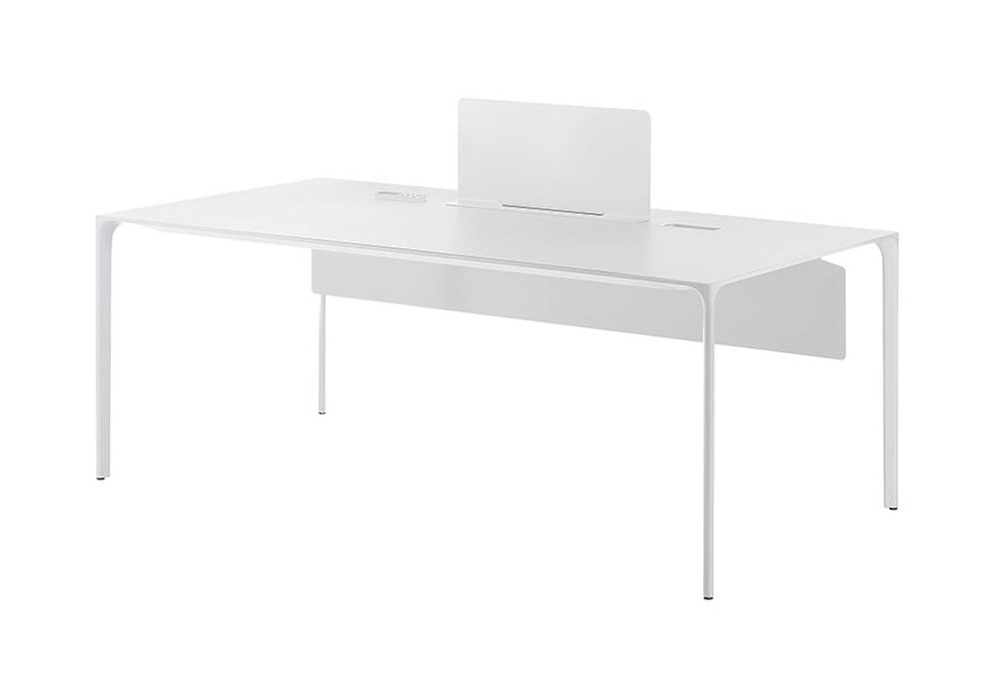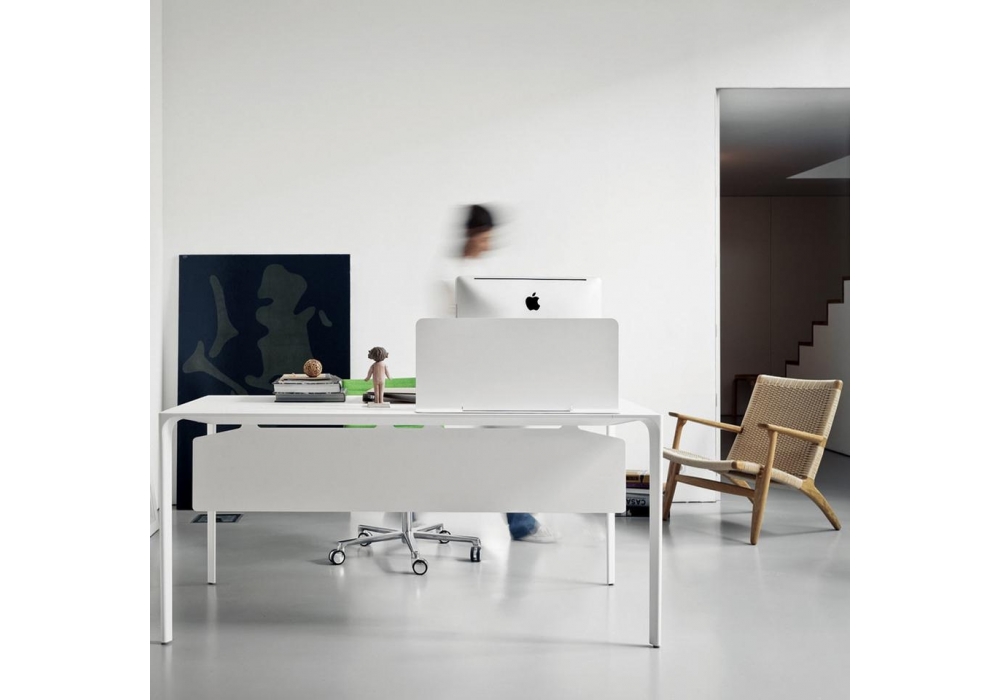 Nuur Office firmato da Simon Pengelly per Arper è un tavolo con piano rettangolare dotato di finestre passacavi e predisposto a ricevere gli accessori ufficio opzionali. E' disponibile un piano dattilo rettangolare collegabile ai modelli Nuur Office. Tutti i piani sono in laminato con struttura in alluminio verniciato.