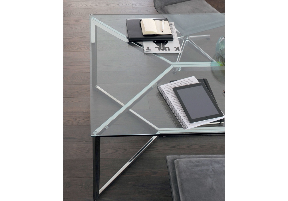 Carlomagno firmato da Pierangelo Gallotti per Gallotti&Radice è un tavolo con piano in cristallo trasparente 15mm. A richiesta retroverniciato nei colori del campionario, nella versione brillante o satinata. Struttura in acciaio inox lucido (profilo 40x20x2mm). Disponibile anche in acciaio inox satinato o in acciaio laccato bianco o nero goffrato. Su richiesta si realizzano piani con dimensioni speciali.