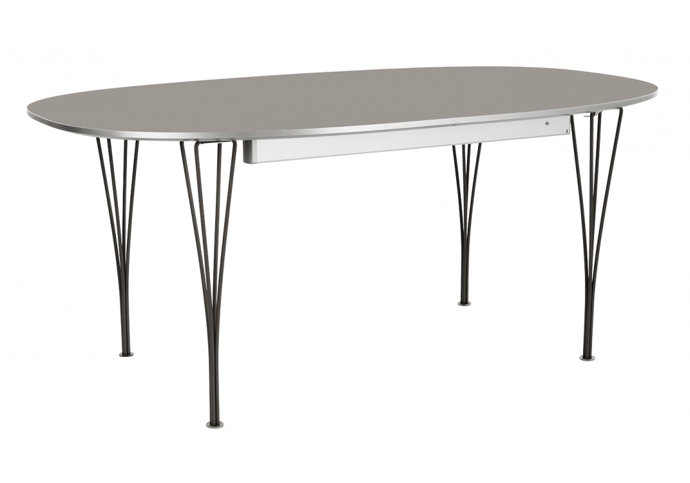 Superellipse firmato da Piet Hein e Bruno Mathsson per Fritz Hansen è un tavolo allungabile realizzato con piano in laminato o in legno e gambe in acciaio cromato o verniciato a polvere. Disponibile in diverse finiture e dimensioni.