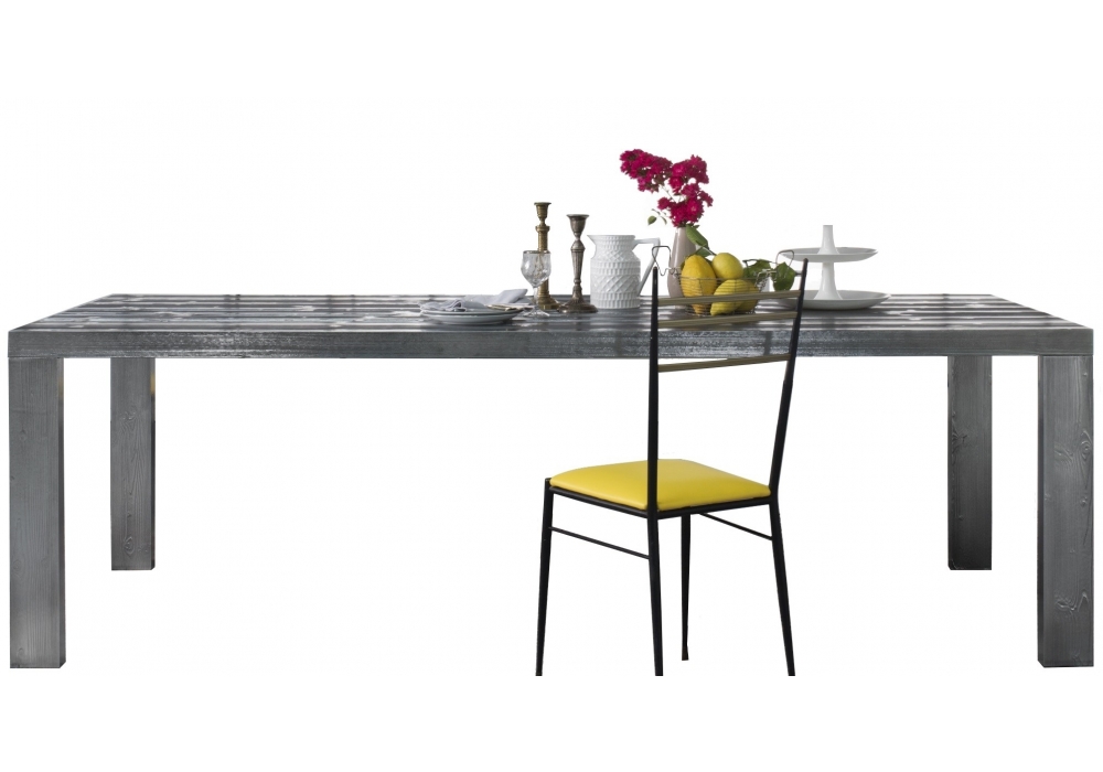 Segno firmato da Silvano Pierdonà per Capodopera è un tavolo con piano caratterizzato da pannelli in tamburato e gambe in MDF laccato lucido, opaco o pannelli di legno impiallacciato in diverse finiture.