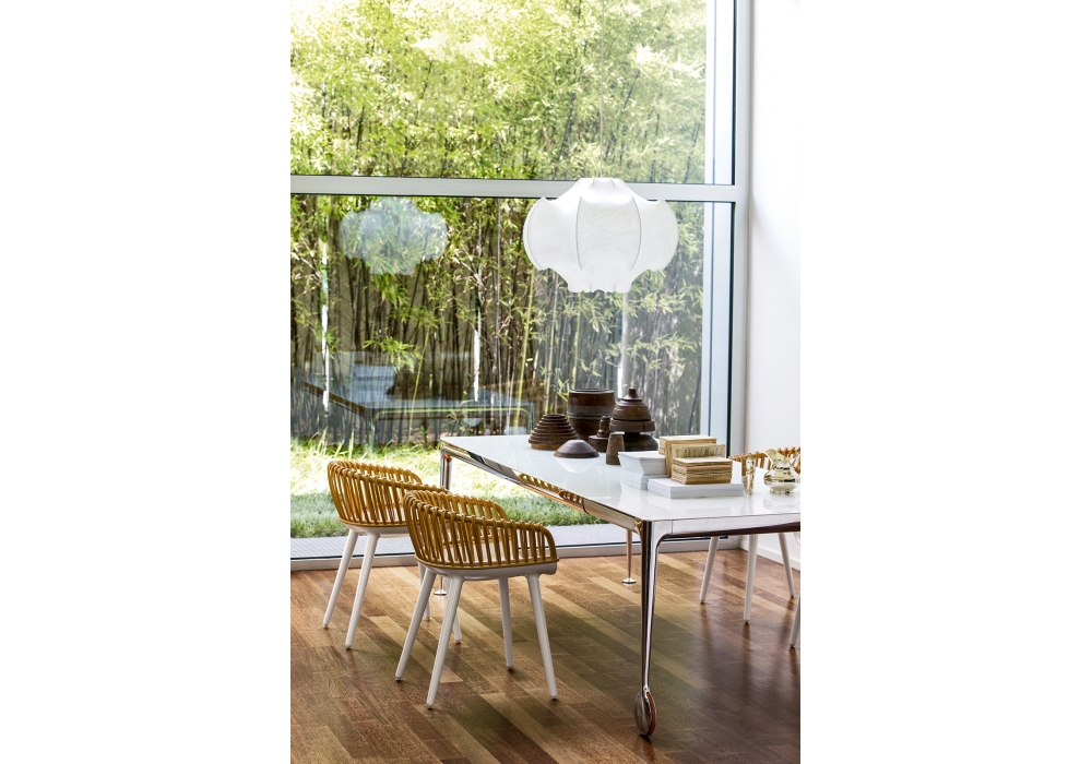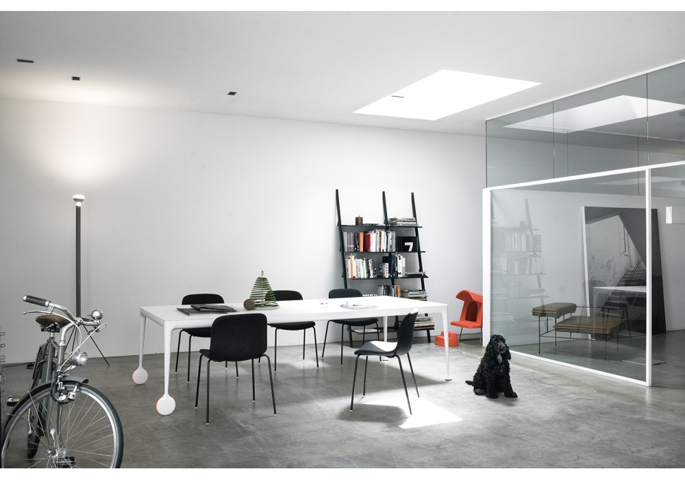 Big Will firmato da Philippe Starck per Magis è un tavolo con gambe in pressofusione di alluminio lucido o verniciato. Traversi in profilato di alluminio verniciato. Piani in cristallo temperato acidato lucido o opaco. Ruote in gomma.
