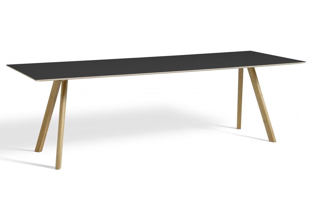 Copenhague CPH 30 firmato da Ronan e Erwan Bouroullec per Hay è un tavolo con piano in multistrato con laminato, linoleum o impiallacciato in diverse finiture. Il bordo del piano del tavolo è smussato e corrisponde alla finitura della base. Gambe inclinate in legno dotate di viti integrate non visibili. Piedini regolabili estensibili per livellare il tavolo su superfici irregolari. Disponibile in differenti dimensioni e finiture.