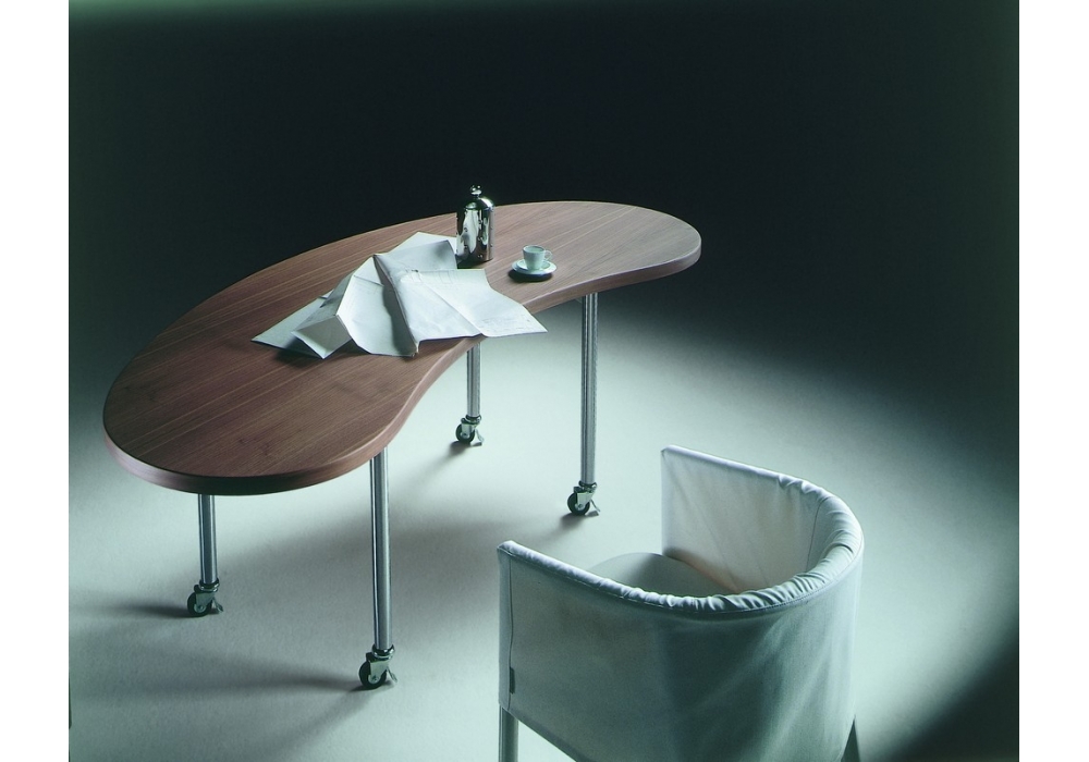 Mixer è un tavolo con ruote disegnato da Centro Studi per Flexform. Struttura in metallo laccato, piano in legno.