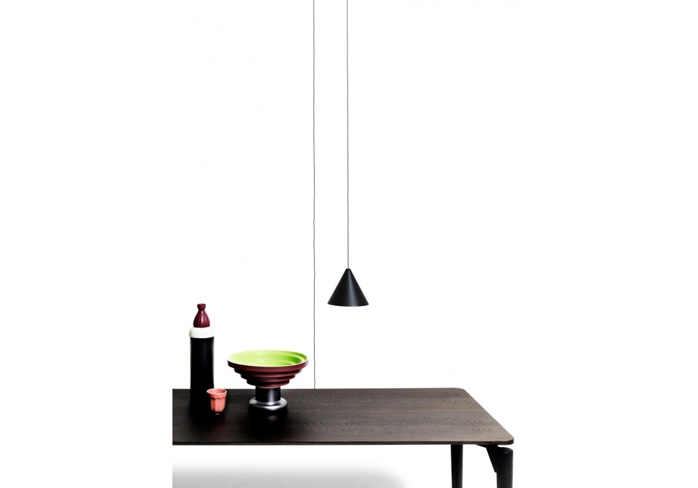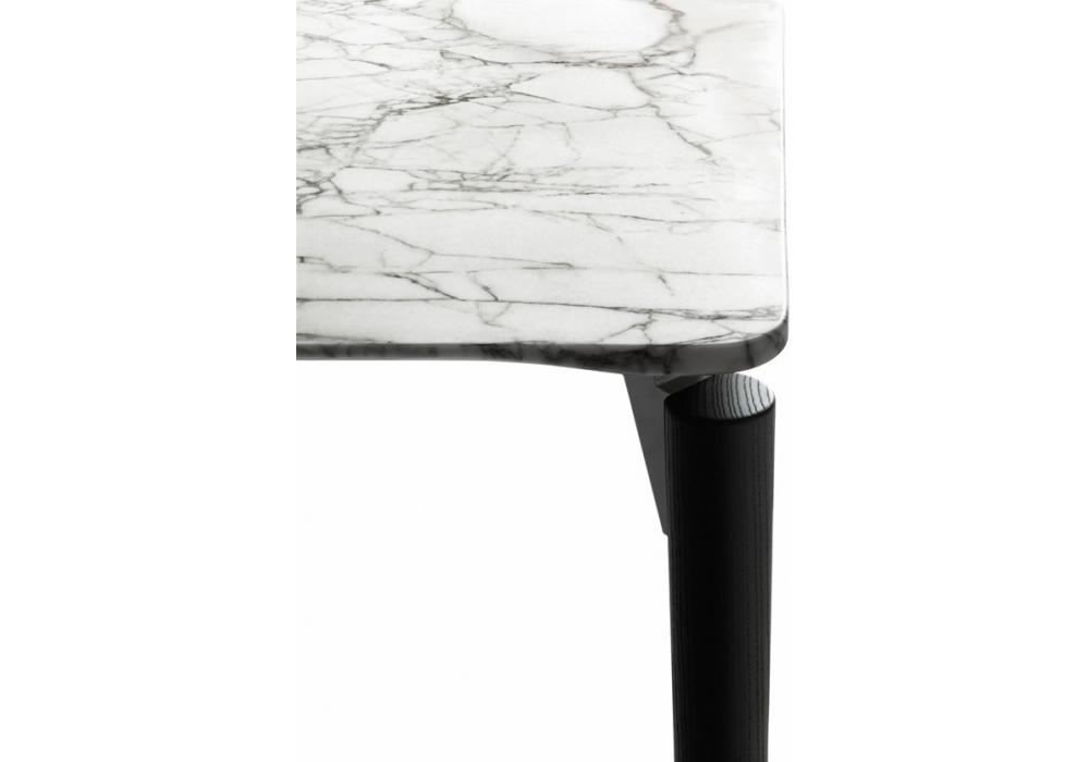 Tavolo '95 firmato da Achille Castiglioni per DePadova è un tavolo con gambe in massello di frassino tinto all’anilina color carbone. Telaio in acciaio e staffe in fusione a gravità di alluminio, verniciati a polvere color nero opaco. Piedini regolabili in materiale termoplastico. Disponibile con piano in legno o in marmo in differenti finiture e dimensioni.