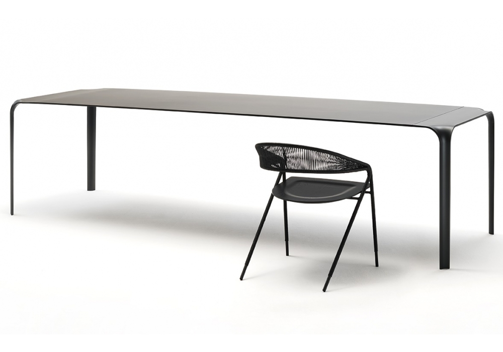 Brasilia firmato da David Lopez Quincoces per Living Divani è un tavolo composto da gambe in fusione di alluminio ricavate da stampo e piano scatolato in "sandwich" di MDF e lamiera d’alluminio, pressati e incollati tra di loro con annegati profilati in acciaio per garantire stabilità e struttura. Finitura con vernice a liquido colore nero opaco, oppure "effetto cemento" nella versione col. "Chiaro" o col. "Scuro". Piano disponibile anche nelle essenze Stone Oak®, Striped Grey o rovere tinto carbone, con gambe in finitura "effetto cemento" col. "Scuro". Appoggio a terra garantito da piedini in materiale plastico.