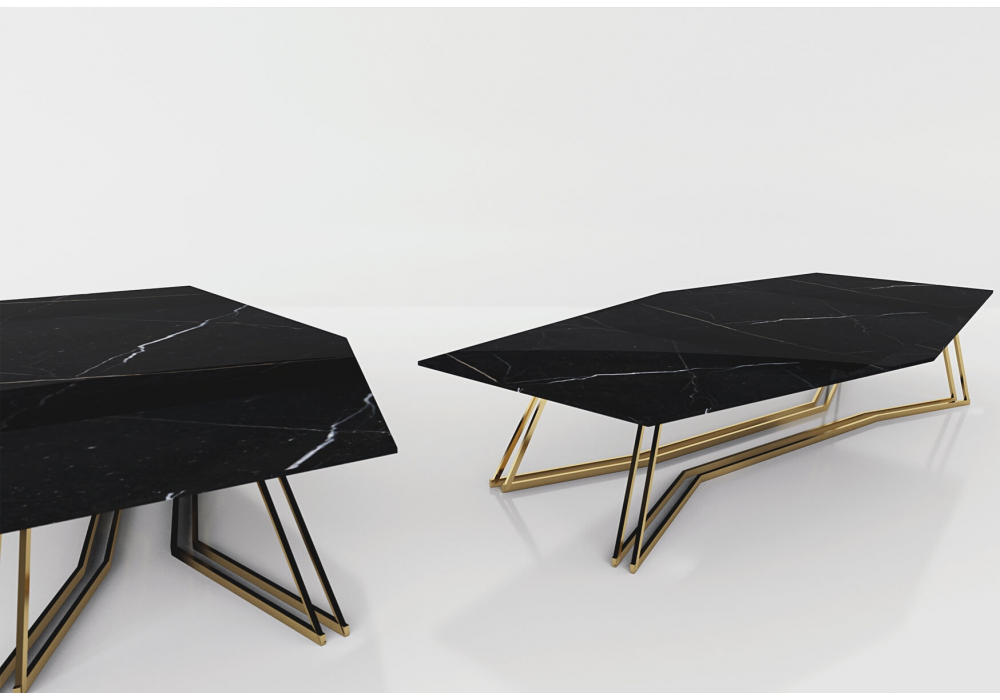 Hexagon è un tavolo firmato da Arketipo Design per Enne. Il mondo ultra-contemporaneo e dinamico di Arketipo Design è meravigliosamente espresso nel design di questo tavolo. Le gambe in metallo dorato sono come linee di fuga. Il piano in marmo porta luminosità e una sensazione di unicità. Un pezzo unico,perfetto per qualsiasi ambiente contemporaneo.