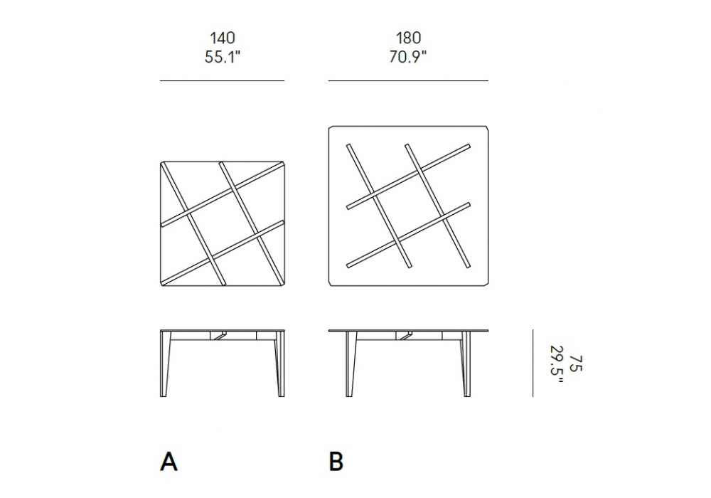 | Piano | 140 x 140 cm; 180 x 180 cm. |