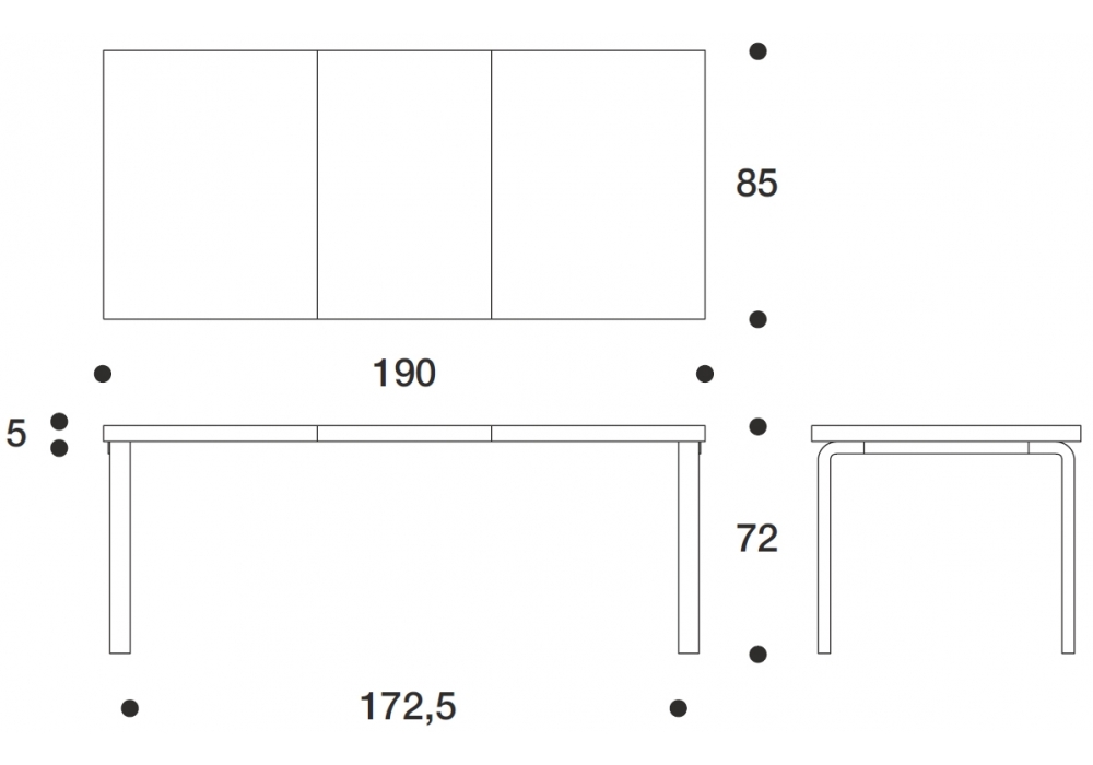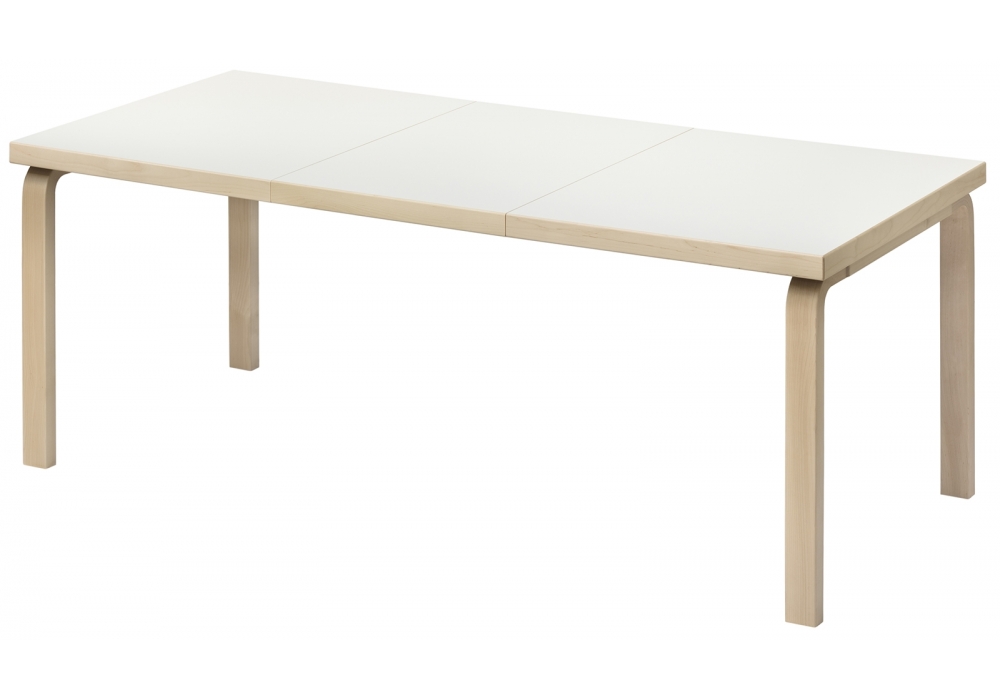 Aalto Extension Table firmato da Alvar Aalto per Artek è un tavolo allungabile con gambe in massello di betulla e piano disponibile in legno impiallacciato di betulla o HPL