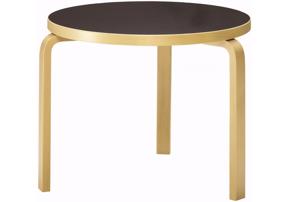 90B Table, disegnato da Alvar Aalto per Artek, è un tavolo rotondo in massello di betulla. Il piano è disponibile in diverse finiture. Basati sulla gamba a L, questi tavoli sono stati ampiamente adottati come tavolo da cucina "perfetto" negli anni '40.