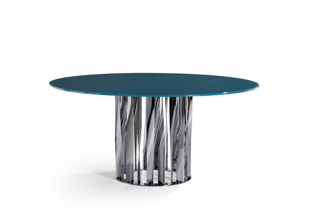 475 Boboli firmato da Rodolfo Dordoni per Cassina è un tavolo realizzato con base in alluminio verniciato, piano in cristallo extrachiaro non temperato retrolaccato, marmo o in legno. Lazy Susan opzionale.