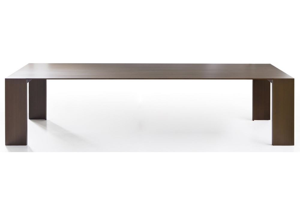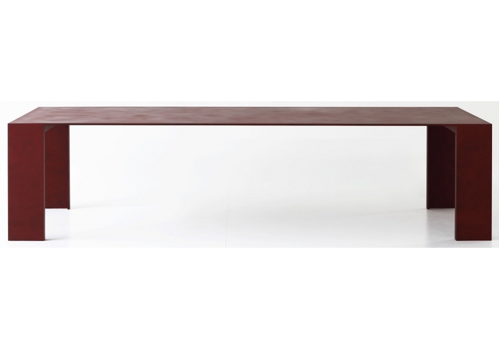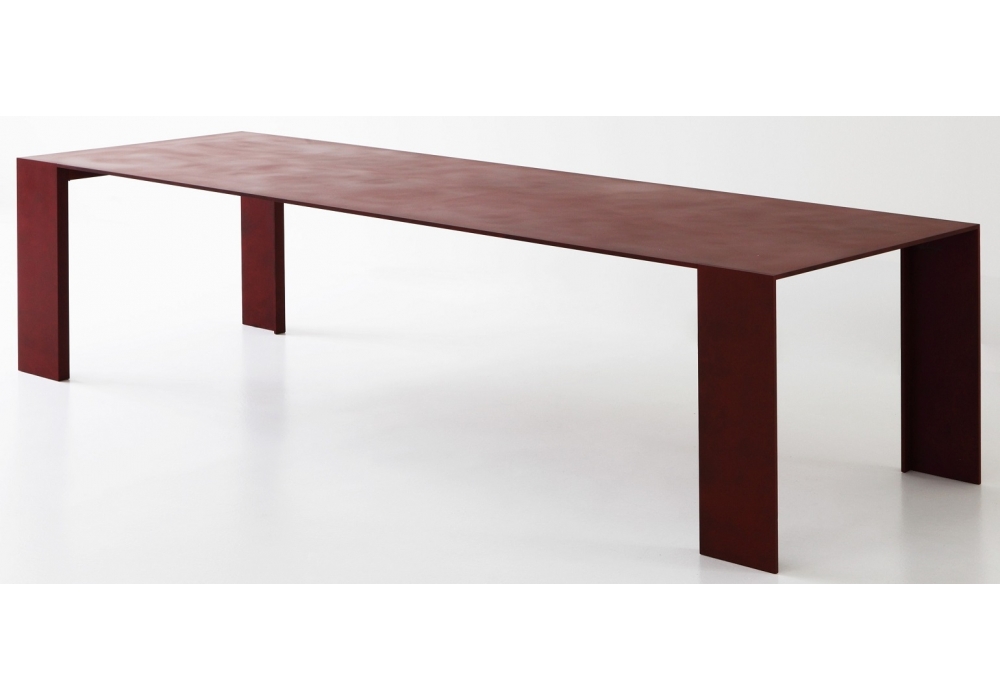 Metallico firmato da Piero Lissoni per Porro è un tavolo che si caratterizza per la leggerezza di piano e gambe, realizzati in lamiera d'alluminio, spessore 12 mm. L'alluminio massiccio conferisce a questo progetto essenziale, dall'estetica delicata ma materialmente importante, solidità e leggerezza, oltre ad essere ecologico. Adatto sia per le sale da pranzo che per zone riunione è disponibile in quattro diversi colori: nero "metallico", ottone brunito, bianco "metallico" e rosso antico.