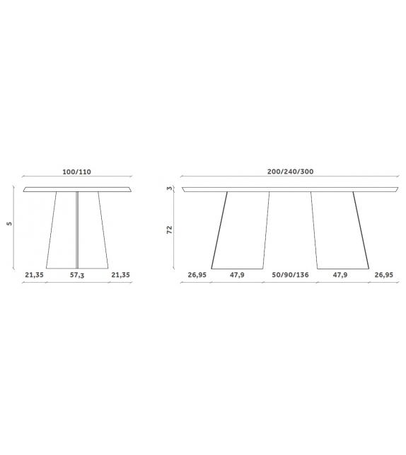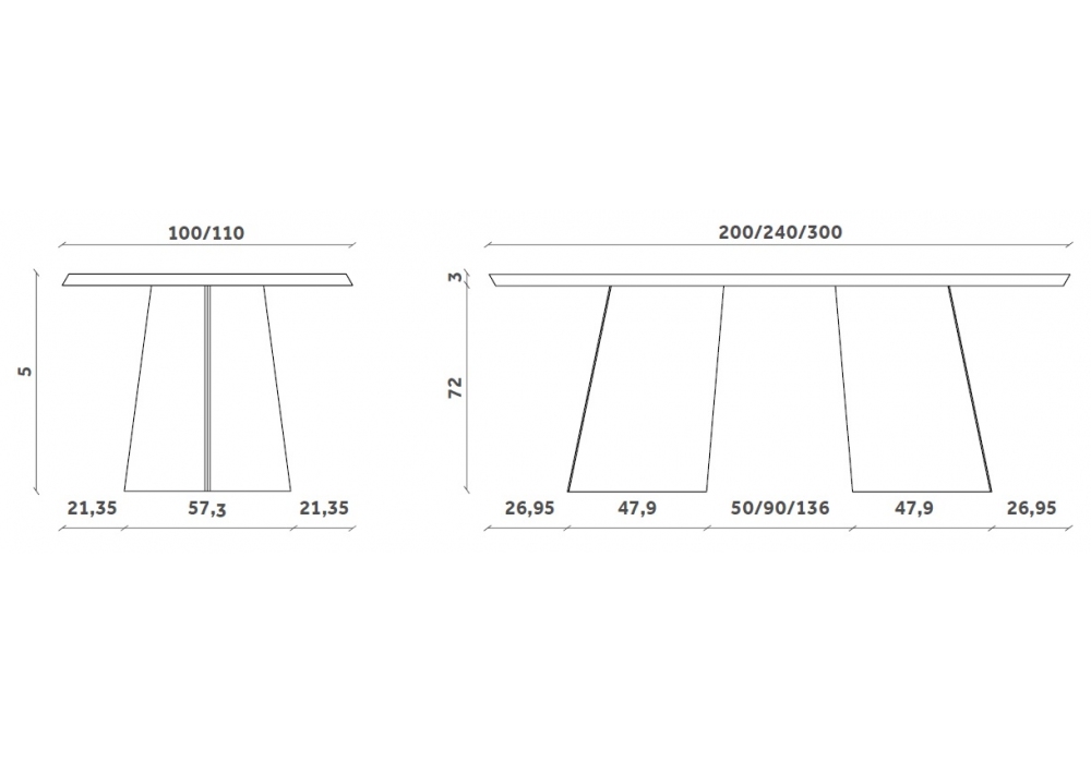 | Dimensioni | • 200 x 100 x H 75 cm; • 240 x 100 x H 75 cm; • 300 x 110 x H 75 cm; • 180-215-250 x 100 x H 75 cm; • 200-235-270 x 100 x H 75 cm |
