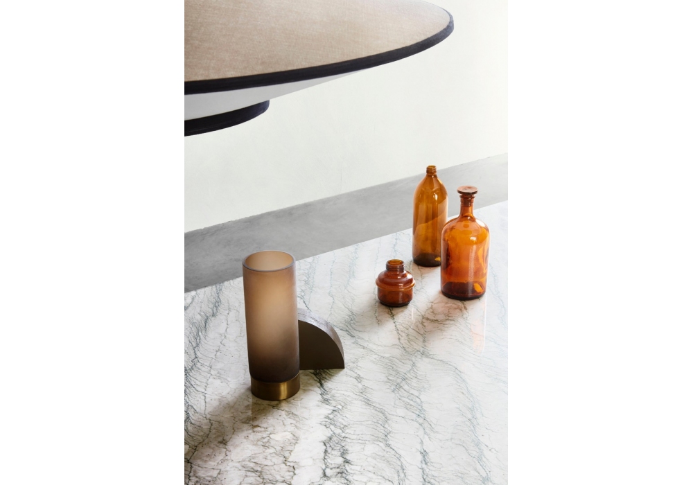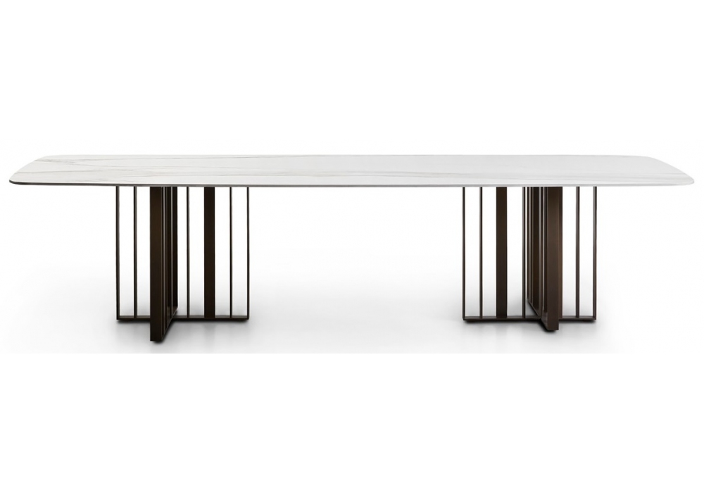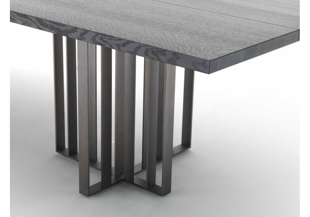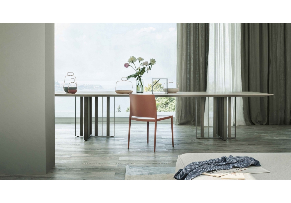 Shade firmato da Francesco Rota per Lema è un tavolo disponibile in diverse misure, nella versione rettangolare o ovale, con basamento scultoreo in metallo. Il piano è disponibile in diversi materiali e finiture, creando un gioco di luci e ombre in contrasto con la base.