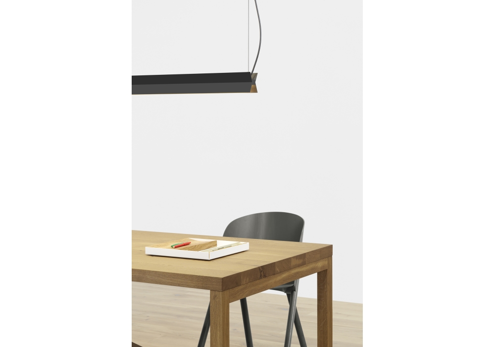 TA21 Platz firmato da Jörg Schellmann per E15 è un tavolo realizzato in massello di rovere. Platz ha una forma chiara e composta, con il design radicato nell'estetica dei tavoli da lavoro tradizionali. Una barra diagonale garantisce un'elevata stabilità e sottolinea un approccio di lavoro informale. Disponibile in diverse dimensioni.