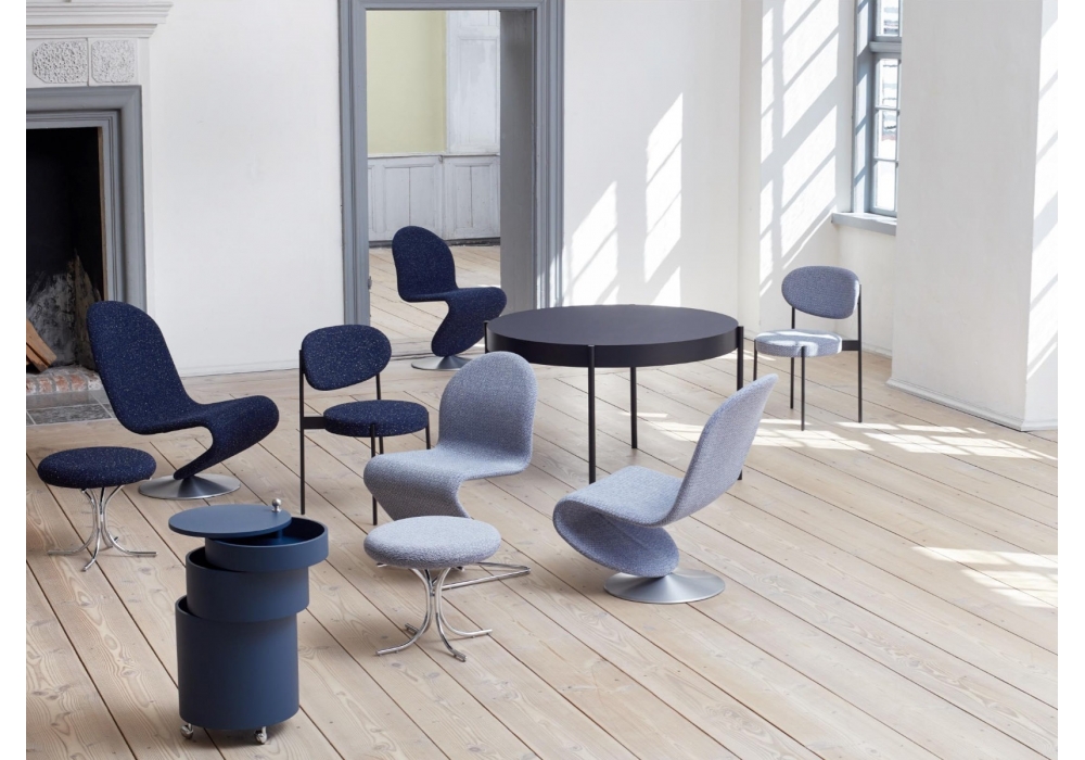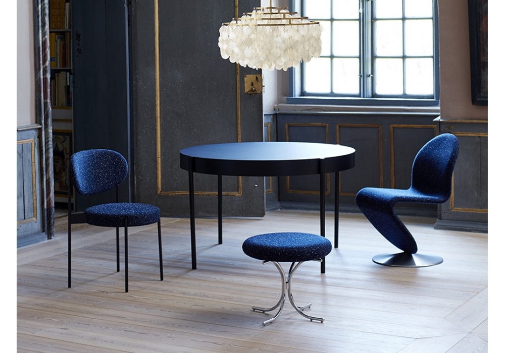 Series 430 firmato da Verner Panton per Verpan è un tavolo rotondo con piano in fenix, struttura e gambe in metallo e bordo in MDF verniciato. Disponibile in diverse finiture e dimensioni.