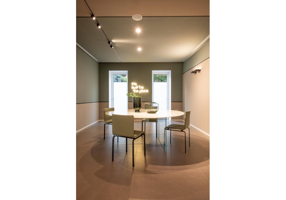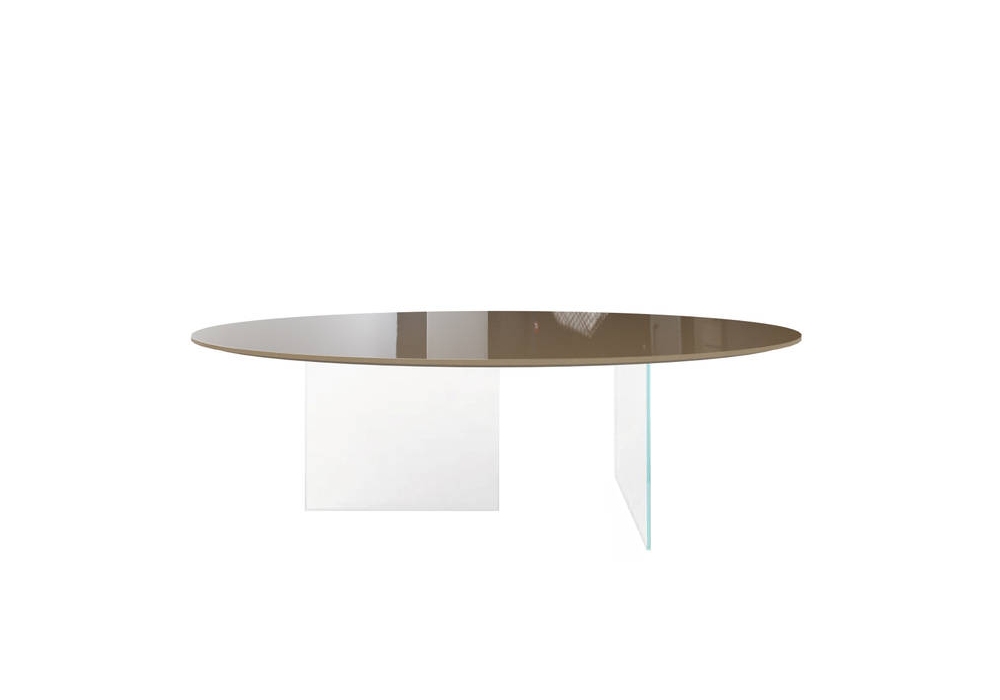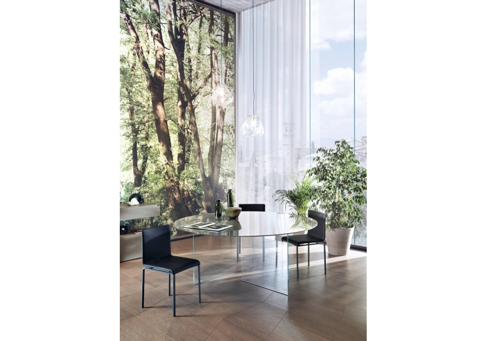 Air Slim firmato da Daniele Lago per Lago è un tavolo rotondo realizzato con gambe in vetro extra-chiaro o fumé grigio e piano in vetro laccato opaco o lucido. Disponibile in diverse finiture e dimensioni.