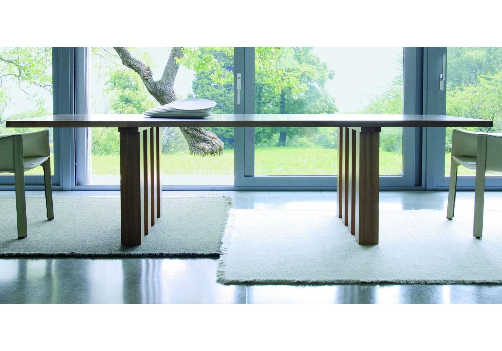 451 La Basilica firmato da Mario Bellini per Cassina è un tavolo in frassino. Disponibile con piano a tre doghe e base con 6 gambe o con piano a 4 doghe e base con 8 gambe.