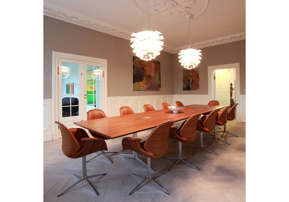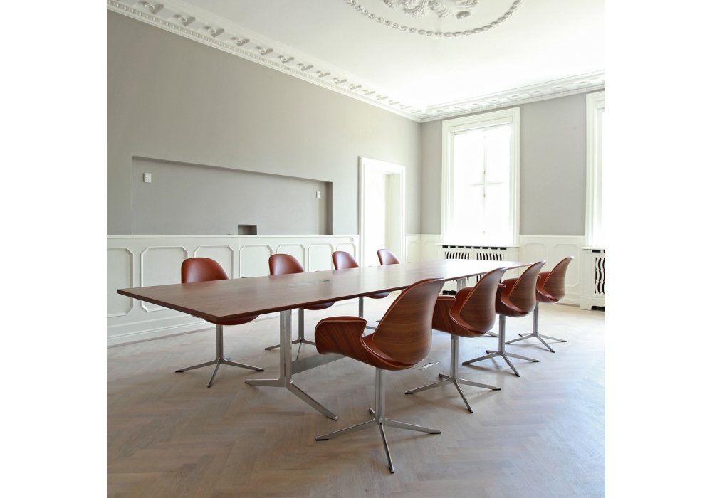 Council Table firmato da Salto & Sigsgaard per OneCollection è un bellissimo tavolo con piano disponibile in legno impiallacciato o linoleum e gambe in alluminio lucido. Disponibile anche in 3 diverse dimensioni e 2 modelli.