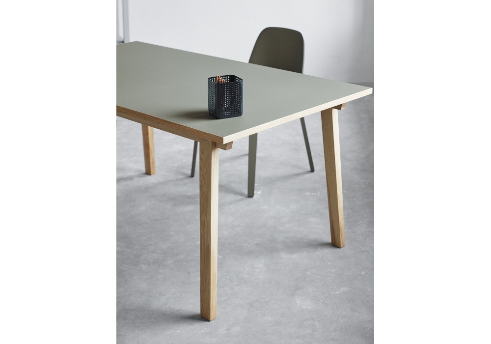 Slice, firmato da Hans Hornemann per Normann Copenhagen è un tavolo, interamente realizzato in rovere con piano impiallacciato in linoleum. Il linoleum essendo un prodotto naturale presenta proprietà antibatteriche e autorigeneranti, con una superficie vellutata, morbida e piacevole al tatto e grazie alla resistenza dei materiali, la serie Slice è perfetta per un uso frequente. Slice è disponibile in diverse finiture e dimensioni.