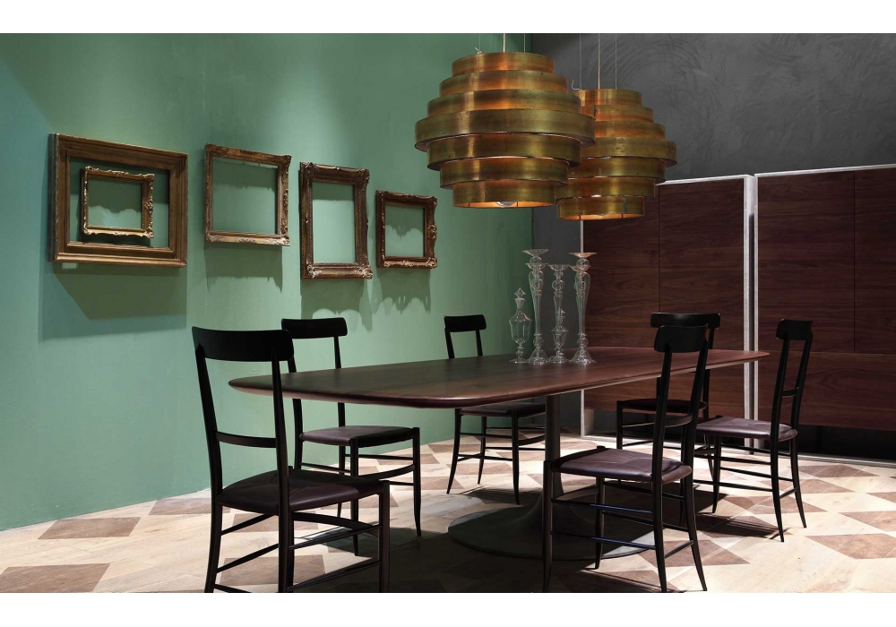 Bourgeois firmata da Matteo Thun & Antonio Rodriguez per Baxter è un tavolo con base in fusione di ghisa sabbiata. Piano in massello di noce canaletto tinto scuro e finito con oli naturali o in frassino tinto grigio antracite scuro e finito con oli naturali.