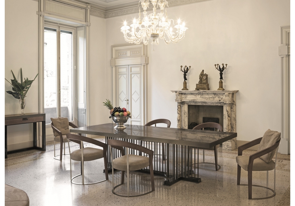 Schubert firmato da Giuseppe Viganò per Longhi è un tavolo con struttura caratterizzata da tondini in metallo fissati mediante piastra metallica tra base e piano. Base in legno, struttura e piano disponibili in varie finiture. Su richiesta è possibile realizzare la struttura bicolore.