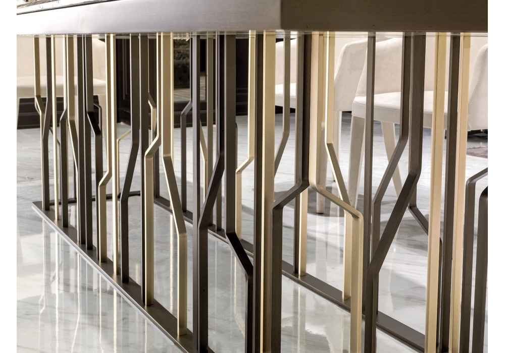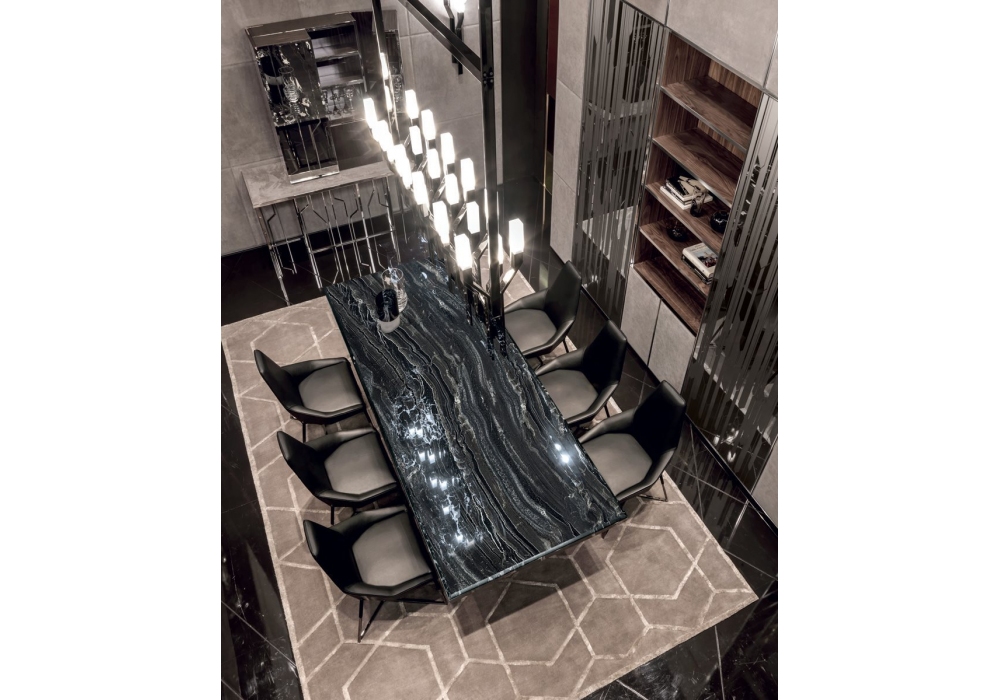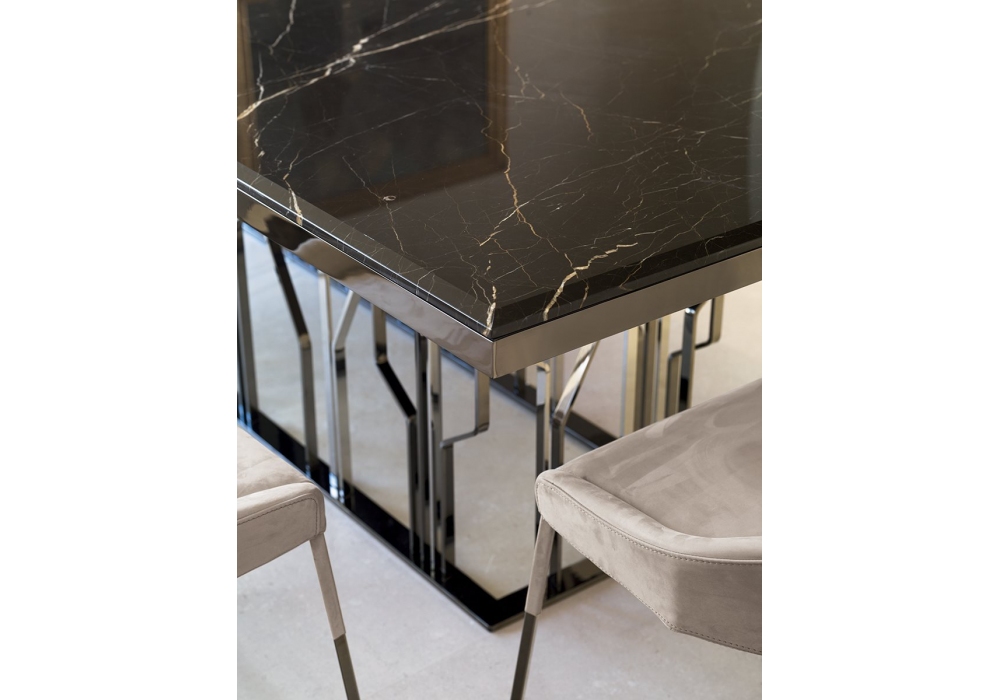Ginza firmato da Alessandro La Spada per Longhi è un tavolo con struttura in metallo lucido o opaco e piano in marmo, cristallo verniciato o specchio. Disponibile in diverse dimensioni e finiture.