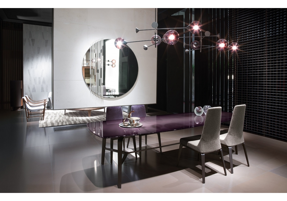 Blade firmato da Umberto Asnago per Giorgetti è un tavolo in legno con i distanziali delle gambe in metallo verniciato color bronzo. Disponibile in due versioni e tre dimensioni.