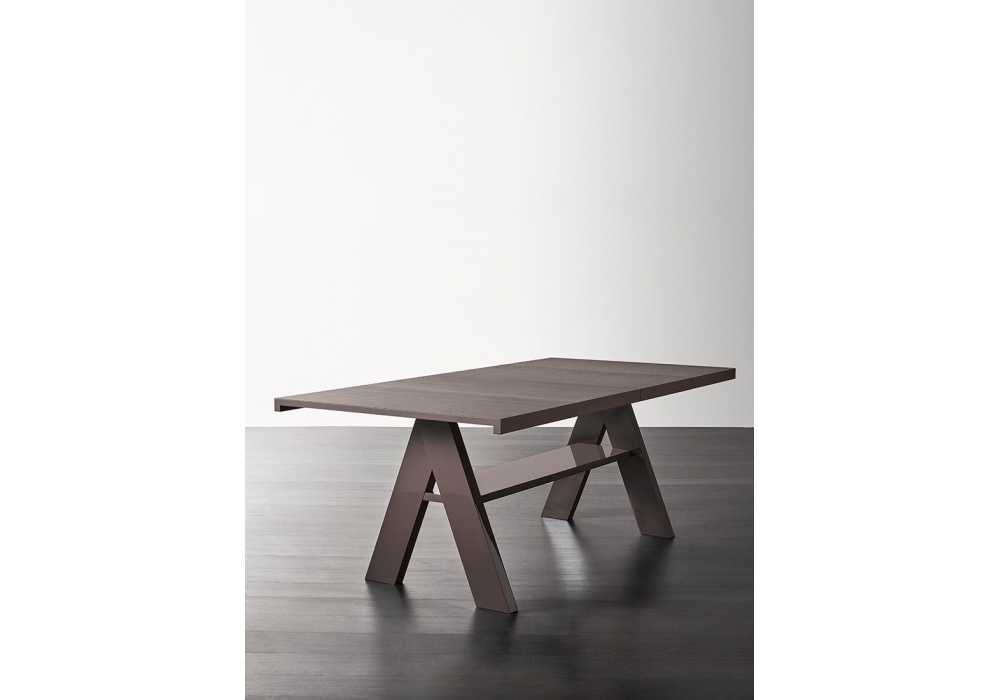 Joi firmata da Andrea Parisio per Meridiani è un tavolo da pranzo con gambe in massello laccato lucido, opaco o in legno iroko, mensola in multistrato pioppo laccato opaco, lucido o iroko e piano in legno MDF laccato lucido, opaco o in cemento UHPC fibrorinforzato.