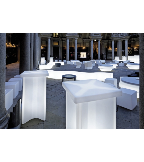 X2 firmato da SLIDE Studio per Slide è tavolo realizzato inpolietilene con stampaggio rotazionale. A partire da una base a forma di X, si sviluppa il volume portante del tavolo, che si chiude con un piano quadrato da 60cm. La base voluminosa e prestante garantisce al prodotto stabilità e resistenza. X2 è concepito per essere utilizzato sia nei locali interni sia negli spazi all’aperto.