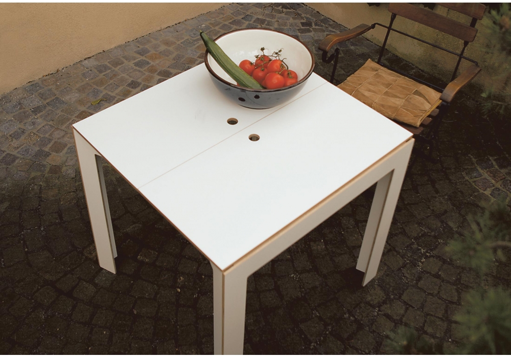 Last Minute firmato da Hauke Murken per Moormann è un tavolo ripiegabile con struttura in compensato di betulla disponibile in 3 diverse finiture: naturale, bianco o nero. Un gancio da parete è fornito come comodo salva-spazio per quando il tavolo viene ripiegato. La forma ingegnosa dei suoi bordi lo rende facile da combinare in serie con altri tavoli.