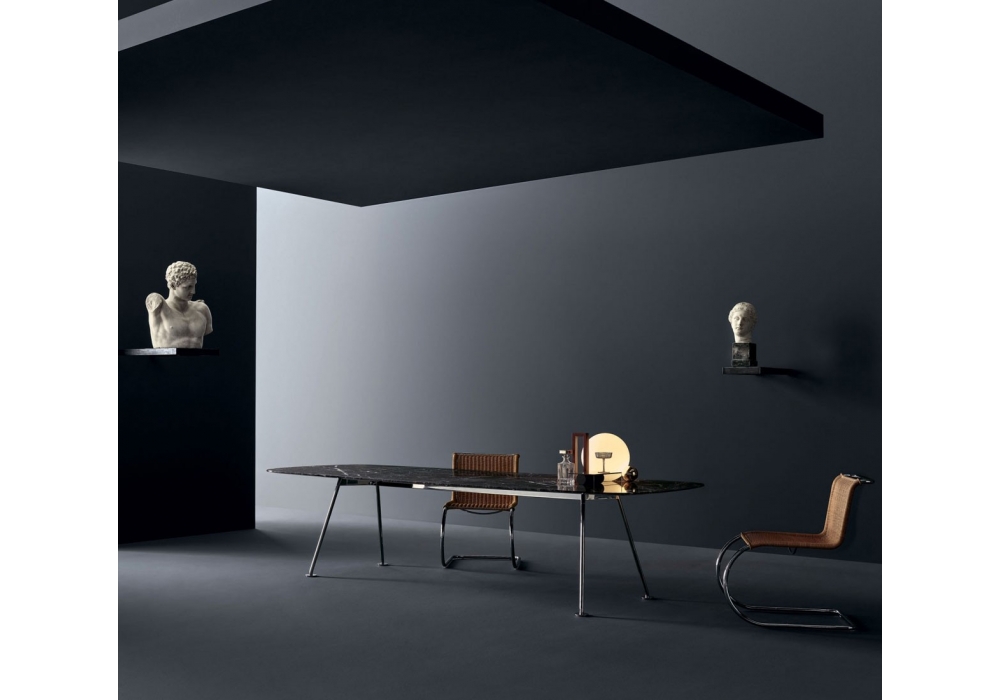 Grasshopper firmato da Piero Lissoni per Knoll è un tavolo con gambe in acciaio disponibili in 3 diverse finiture e piano in marmo, legno o vetro. Disponibile anche in diverse dimensioni.