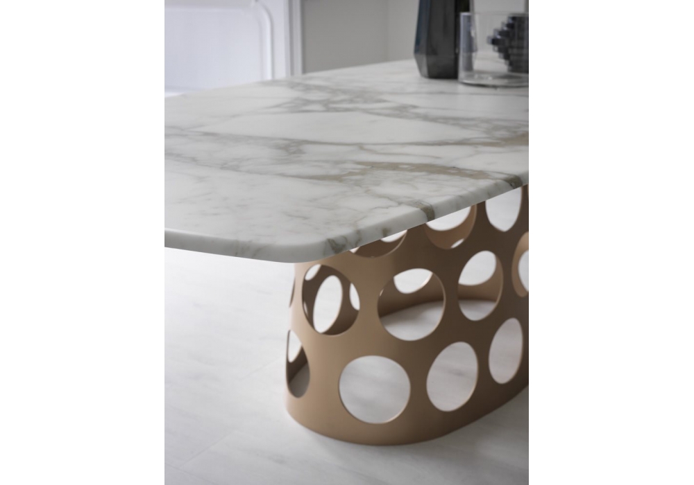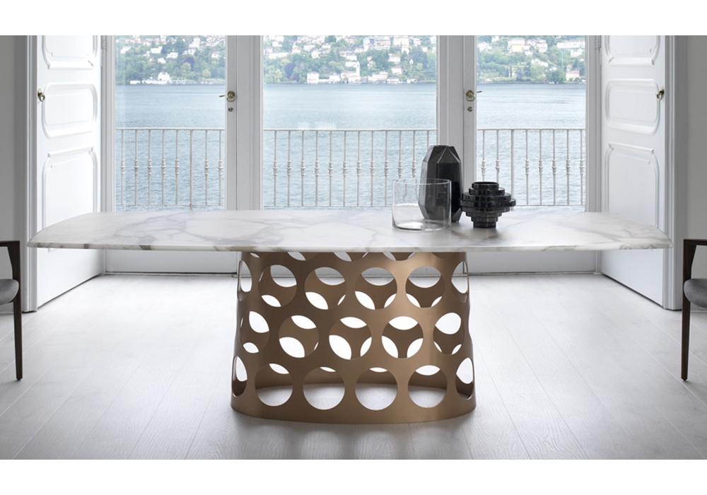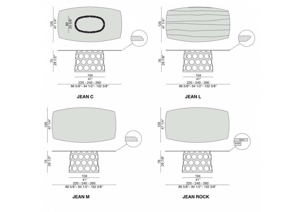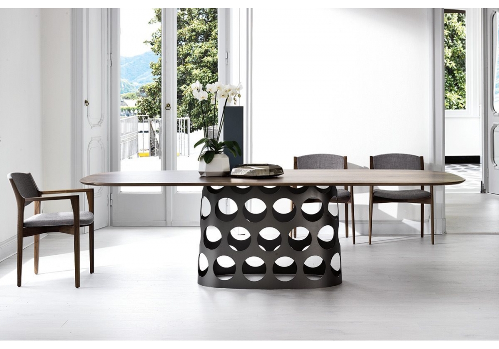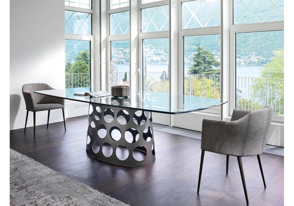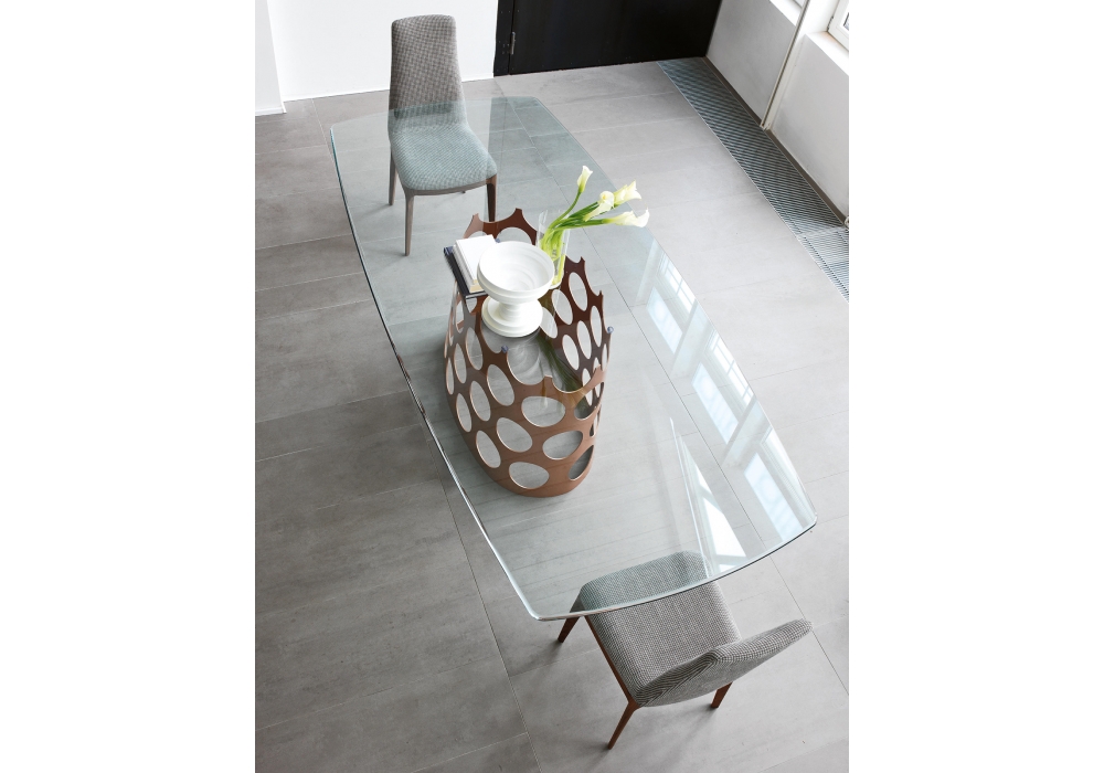 Jean firmato da Carlo Ballabio per Porada è un tavolo da pranzo con base in metallo disponibile in diverse finiture. Piano in cristallo trasparente (spessore mm. 15), in massello di noce canaletta, o in diversi tipi di marmo (spessore mm. 20). Disponibile in diverse dimensioni.