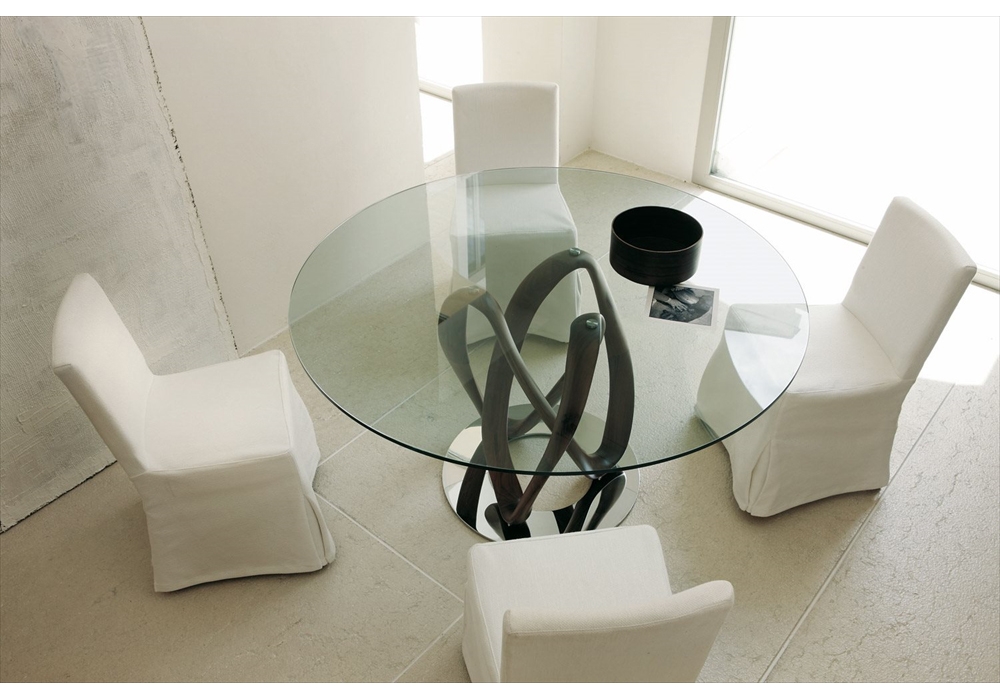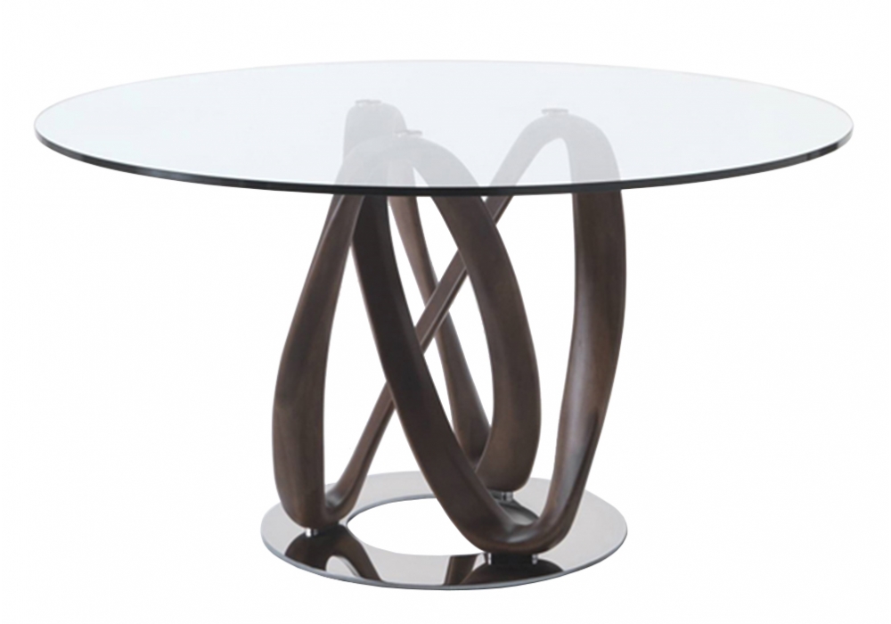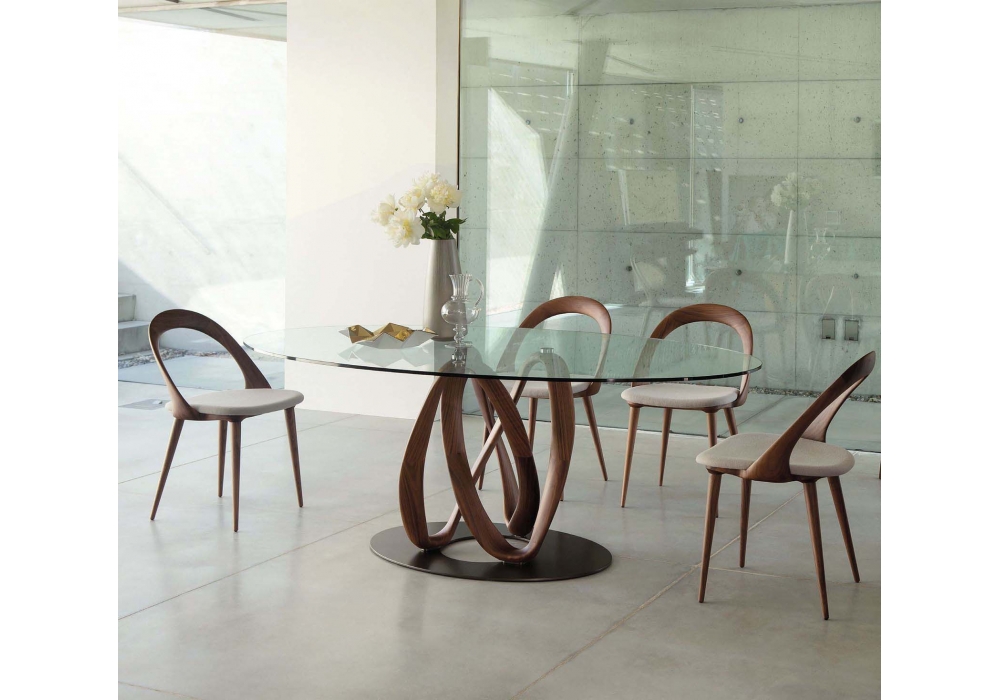 Infinity C firmato da S. Bigi per Porada è un tavolo da pranzo con base in massello di noce canaletta o frassino disponibile in diverse finiture. Piano in cristallo trasparente o fumé (spessore mm. 12). Base montata su una piastra in metallo. Disponibile in diverse dimensioni.