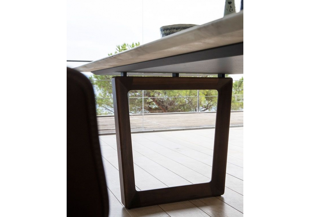 Roberto Lazzeroni disegna il tavolo “Bolero”. Frassino tinto wenge, noce Canaletto, marmo Calacatta Oro, lucido o semilucido. Una presenza essenziale e slanciata nel living disponibile in varie forme geometriche. La struttura portante dei tavoli è realizzata in legno massello di frassino tinto wengè o in legno massello di noce Canaletto con profilo a sezione triangolare. Il piano, nella parte superiore, è impiallacciato in tranciato di frassino tinto wengè o di noce Canaletto con caratteristica lavorazione ad intarsio con venature ad incrociare. Un riporto perimetrale in legno massello di frassino tinto wenge o noce Canaletto rifinisce il bordo.