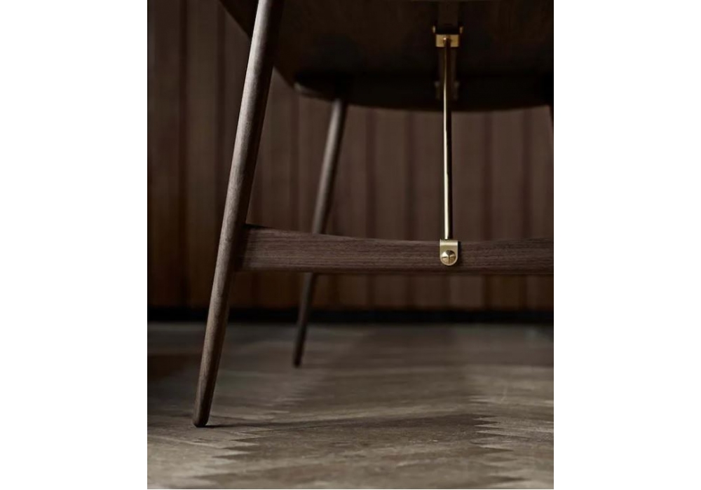 BM1160 Hunting Table firmato da Børge Mogensen per Carl Hansen & Søn è un tavolo con struttura in legno massello di rovere o noce in diverse finiture o nella variante rovere/noce con gambe in rovere e piano in noce. Barre trasversali disponibili in acciaio o ottone.