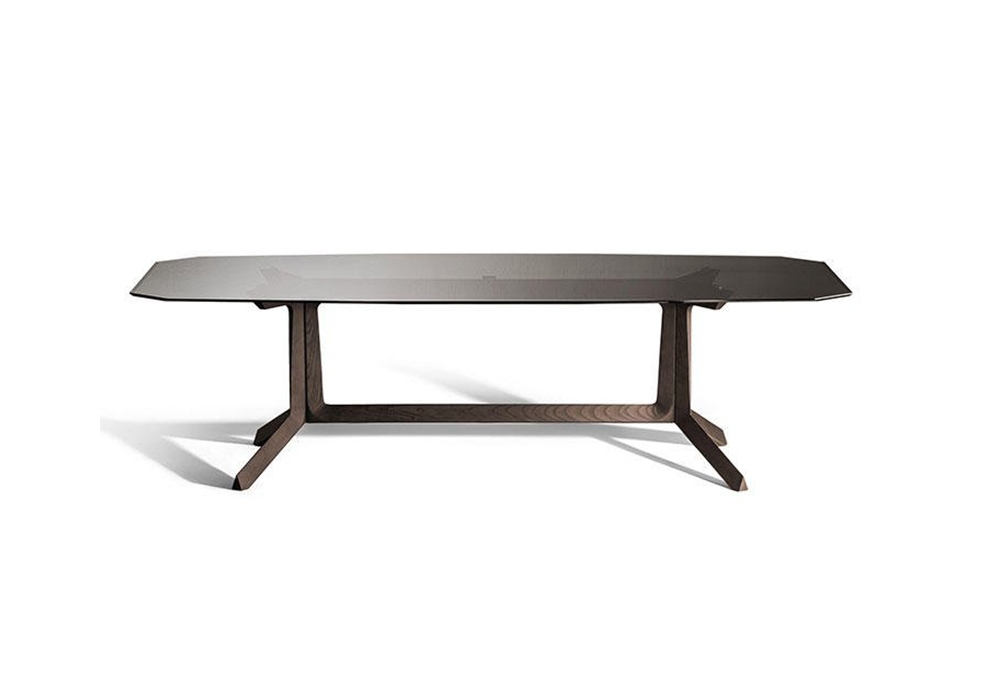 Othello firmato da Roberto Lazzeroni per Poltrona Frau è un tavolo con struttura in legno di frassino e piano in marmo Calacatta oro o Fiori di pesco o in cristallo fumé. Disponibile in due dimensioni, con piano rotondo o quadrato.