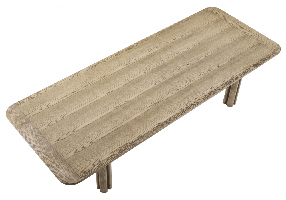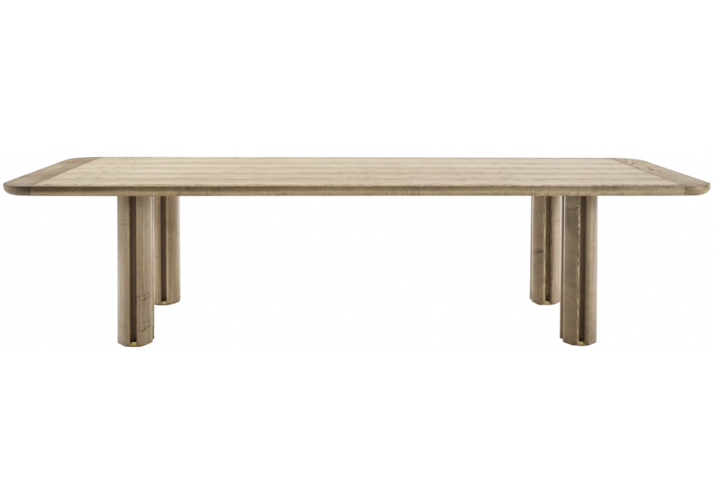 Quadrifoglio Wood firmato da Carlo Ballabio per Porada è un tavolo in legno con piedini in ottone. Disponibile in differenti dimensioni.