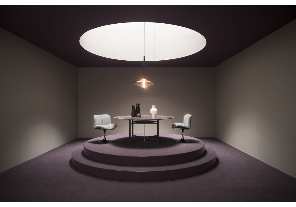 Placé firmato da Federico Peri per Baxter è un tavolo con piano in pietra, disponibile in diverse finiture o rivestito in pelle. Base in metallo verniciato con effetto brunito e dettagli in ottone satinato. Disponibile in diverse dimensioni. I tavoli rotondi con piano in pietra sono completati da un Lazy Susan.