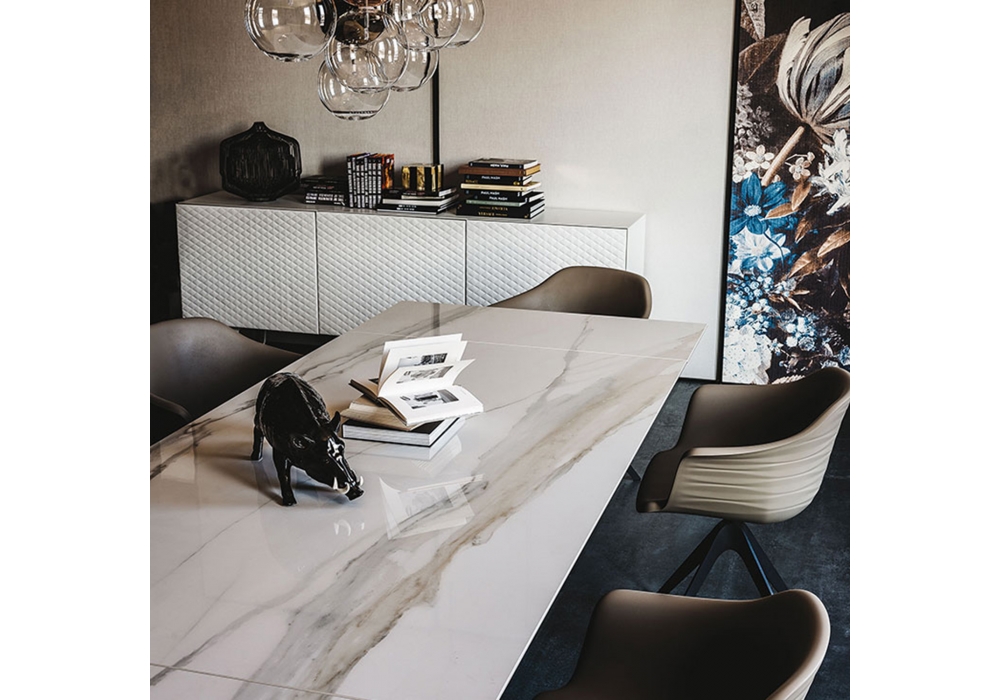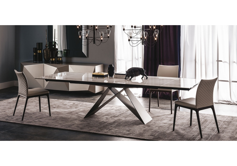 Premier Keramik Drive firmato da A. Lucatello & G. Cattelan per Cattelan Italia è un tavolo allungabile con base realizzata in acciaio e piano in diverse finiture di ceramica Laminam Marmi. Prolunghe nella stessa finitura del piano. Disponibile in diverse dimenisoni.