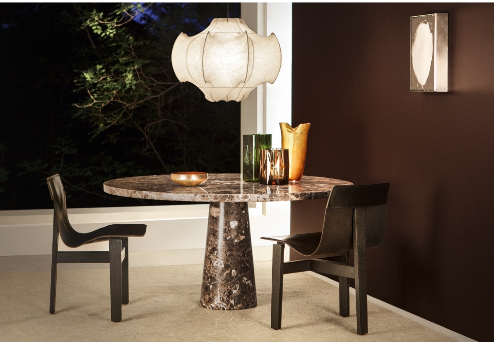 Eros firmato da Angelo Mangiarotti per Agapecasa è un tavolo rotondo con un supporto. Realizzato interamente in marmo, disponibile nelle seguenti finiture: bianco Carrara, nero Marquinia, grigio Carnico, verde Alpi e Emperador Dark.