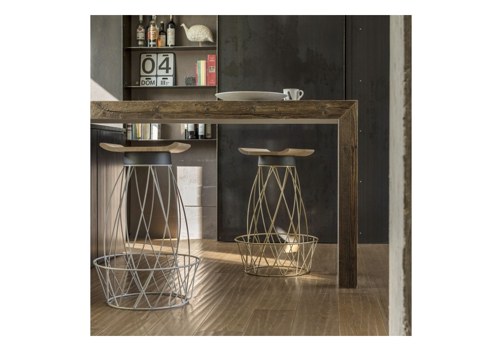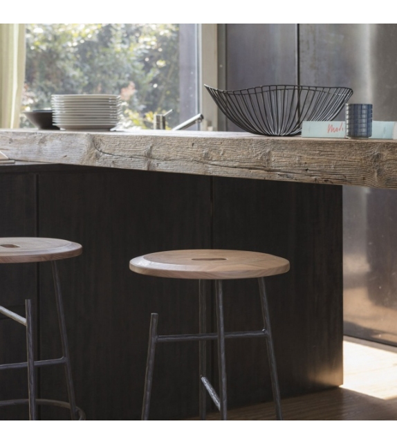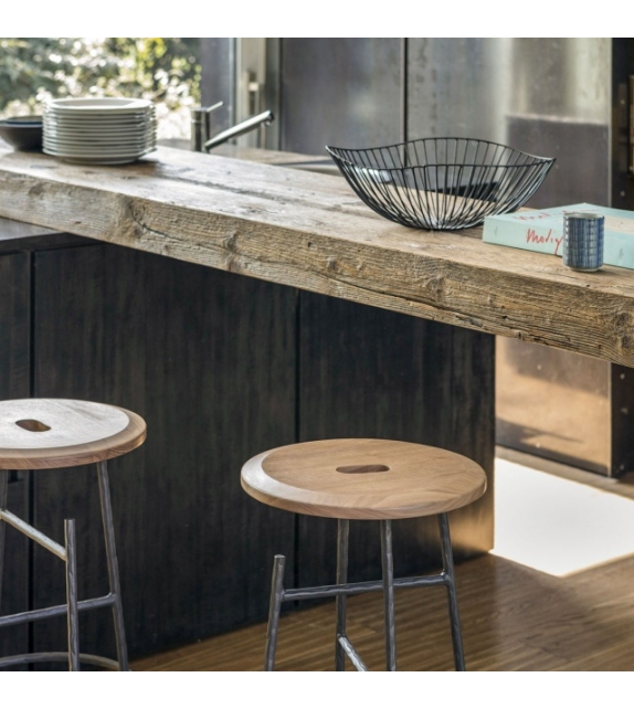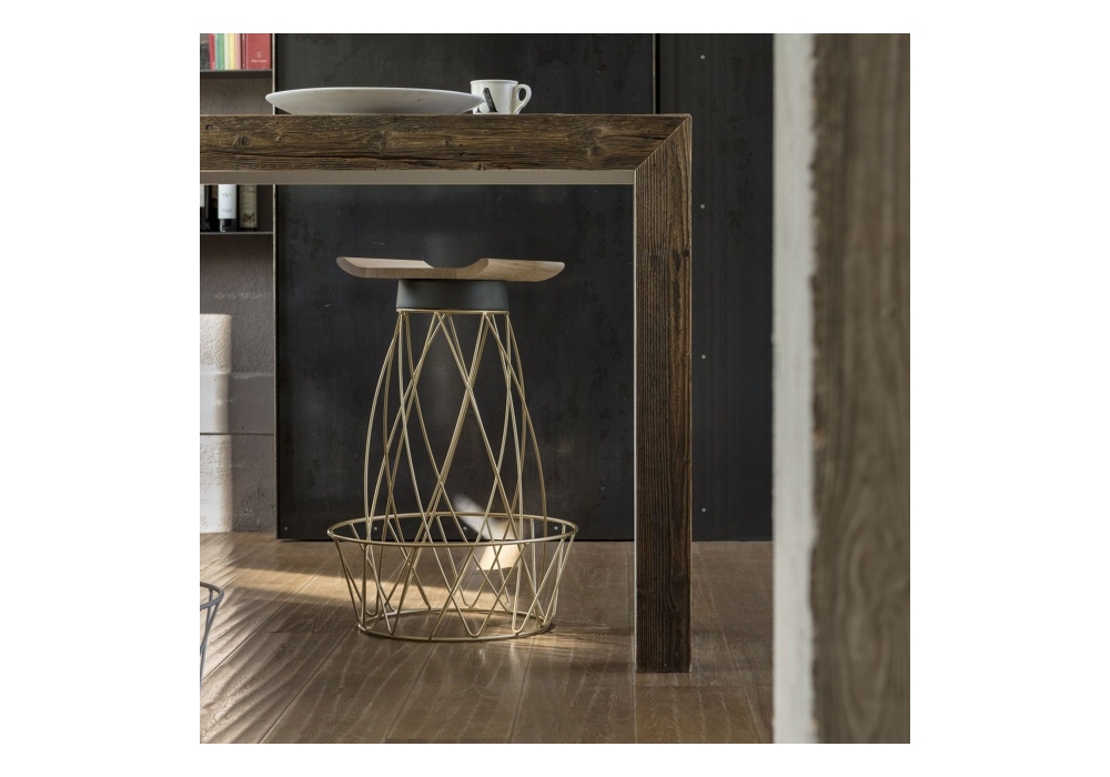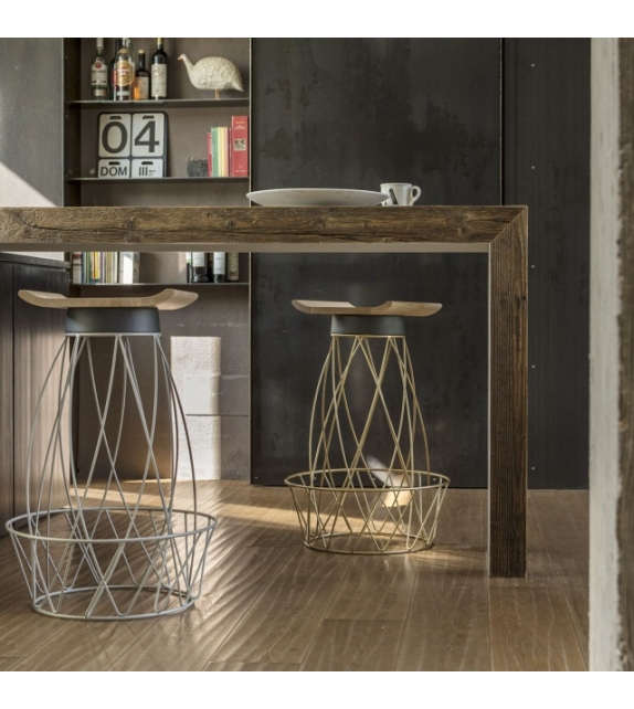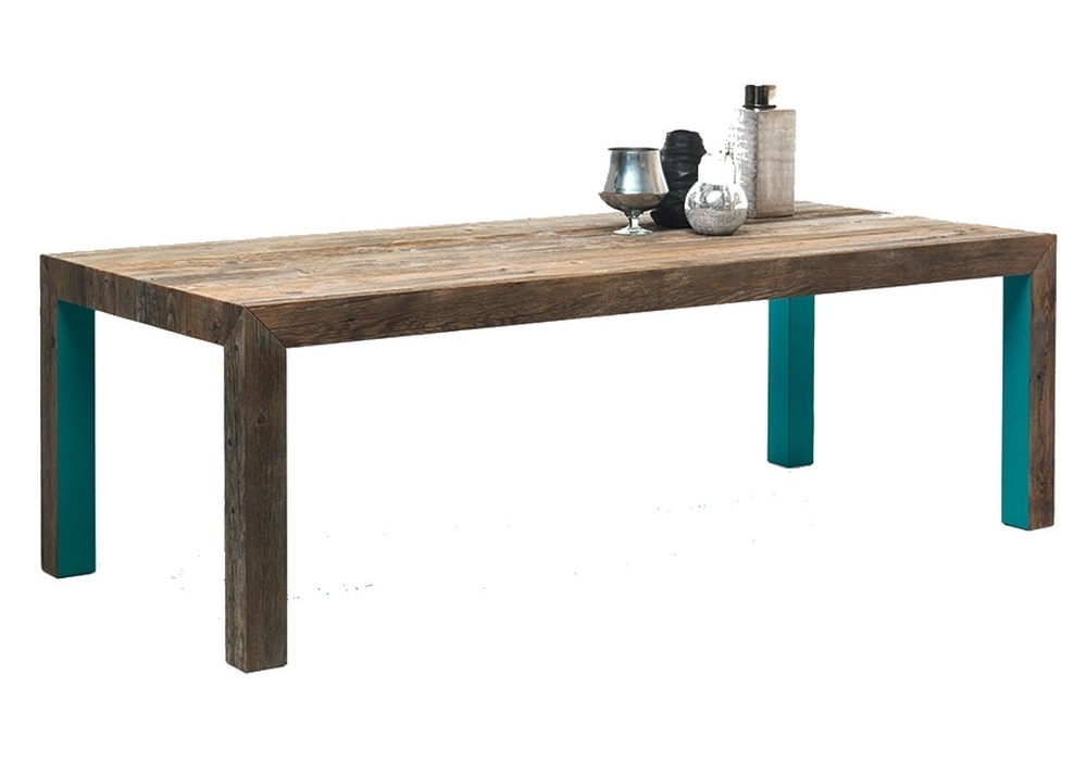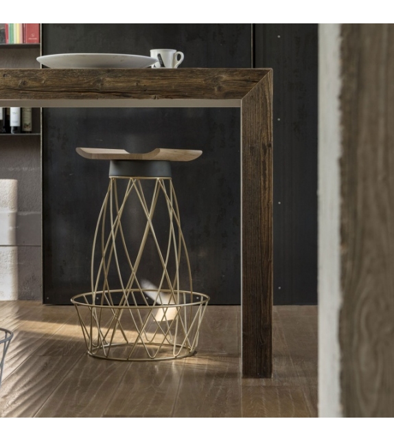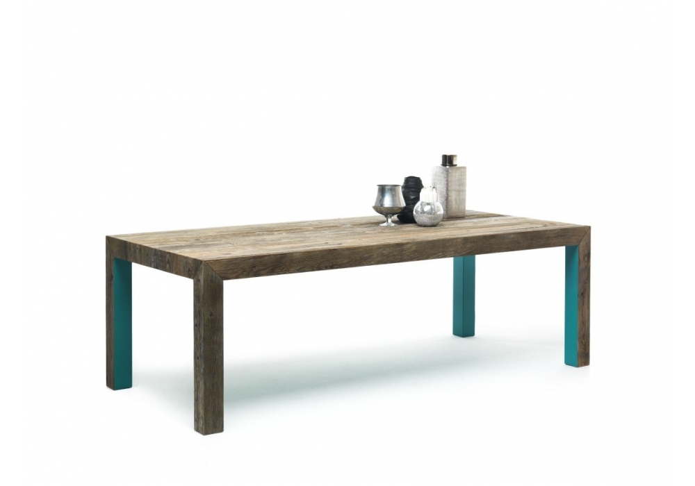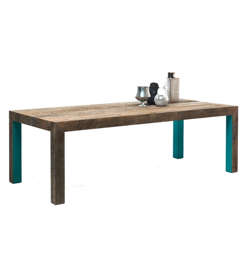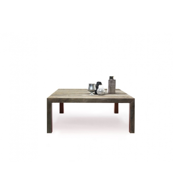 Zio Tom firmato da Claudio Bitetti per Mogg è un tavolo realizzato con lamellare di legno di abete antico di recupero «prima patina», finitura protettiva ad olio naturale. I lati interni delle gambe e il fondo del piano sono laccati goffrato. Disponibile in diverse finiture e dimensioni.